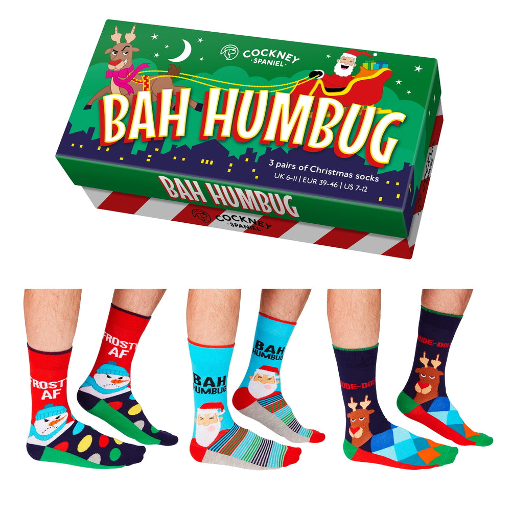 Bah Humbug! Weihnachtsmuffel Socken mit Geschenkverpackung in 39-46 (3 Paar)