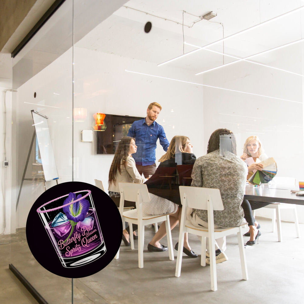 - Der Butterfly Pea Blossom Spritz Queen Magnet zeigt ein elegantes Glas mit einem leuchtend lila Cocktail und einer schwebenden Schmetterlingserbsenblüte, umgeben von glitzernden Eiswürfeln. Ein irisierender Glitzerrand ergänzt das Design, während der geschwungene Text das Motiv stilvoll abrundet. Perfekt für Liebhaber trendiger Social Media Designs.