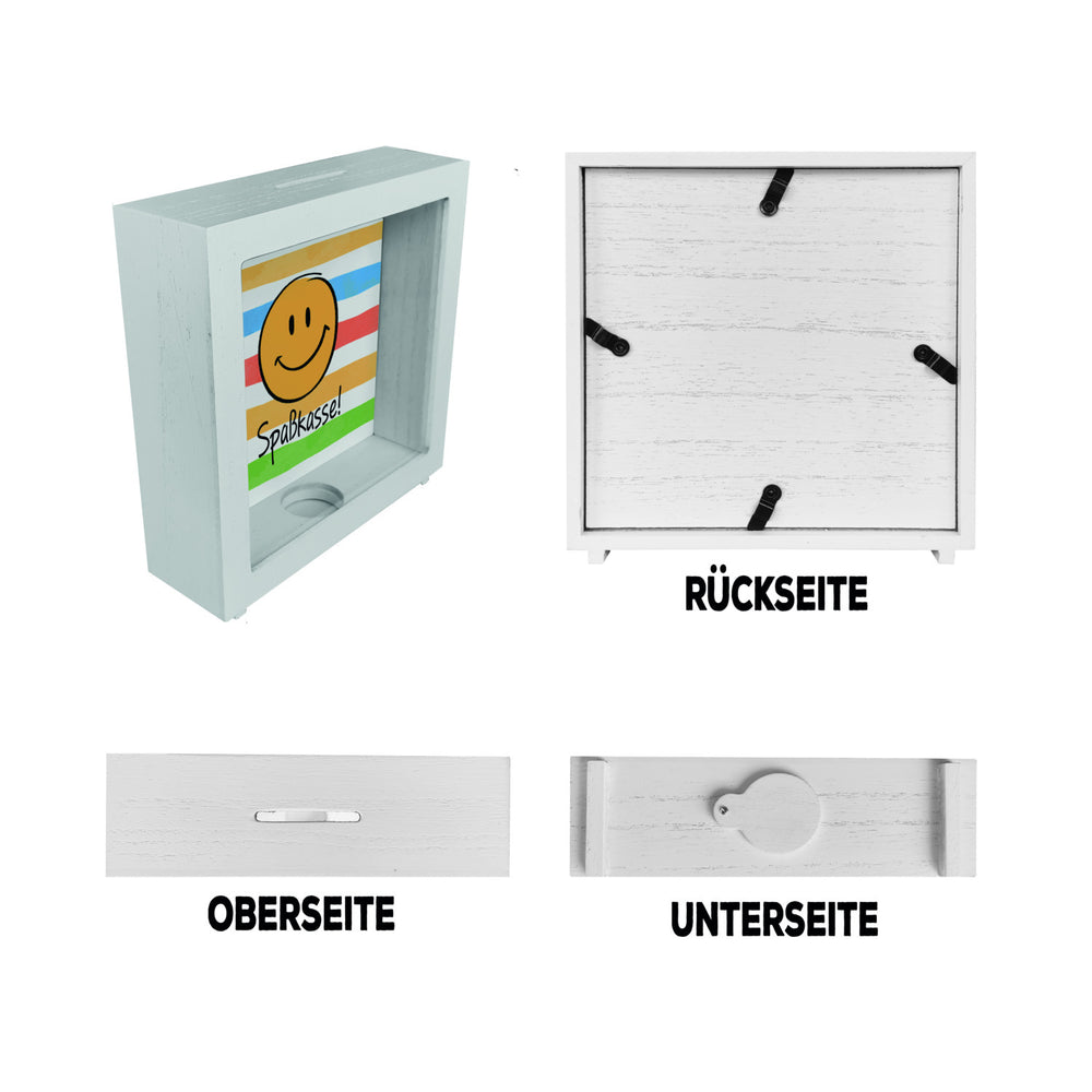 • Erhältlich in drei unterschiedlichen Varianten: Als schlichte Holzspardose, als hochwertige ovale Keramik-Version oder als exklusive Rahmen-Variante aus Holz mit Sichtfenster – perfekt für Geldgeschenke. Mit Sorgfalt bedruckt in unserer Spardosen-Manufaktur in Deutschland.