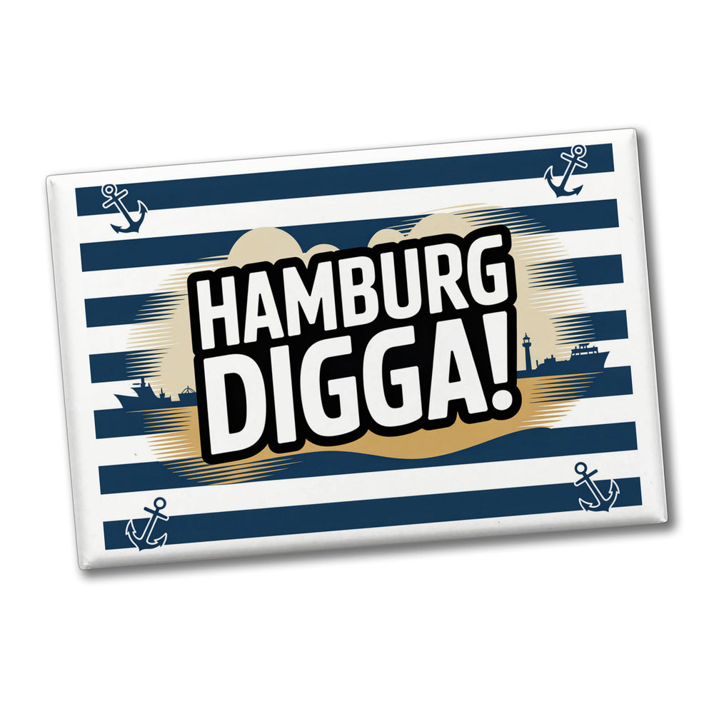 - Hol dir jetzt den Hamburg Digga! Souvenir Magnet – eine hochwertige Erinnerung, mit Liebe designed und bedruckt. Perfekt für alle, die ein bisschen Hamburg-Flair und nordische Nostalgie in ihrem Zuhause verbreiten wollen. Jetzt zuschlagen und die maritime Brise nach Hause holen!