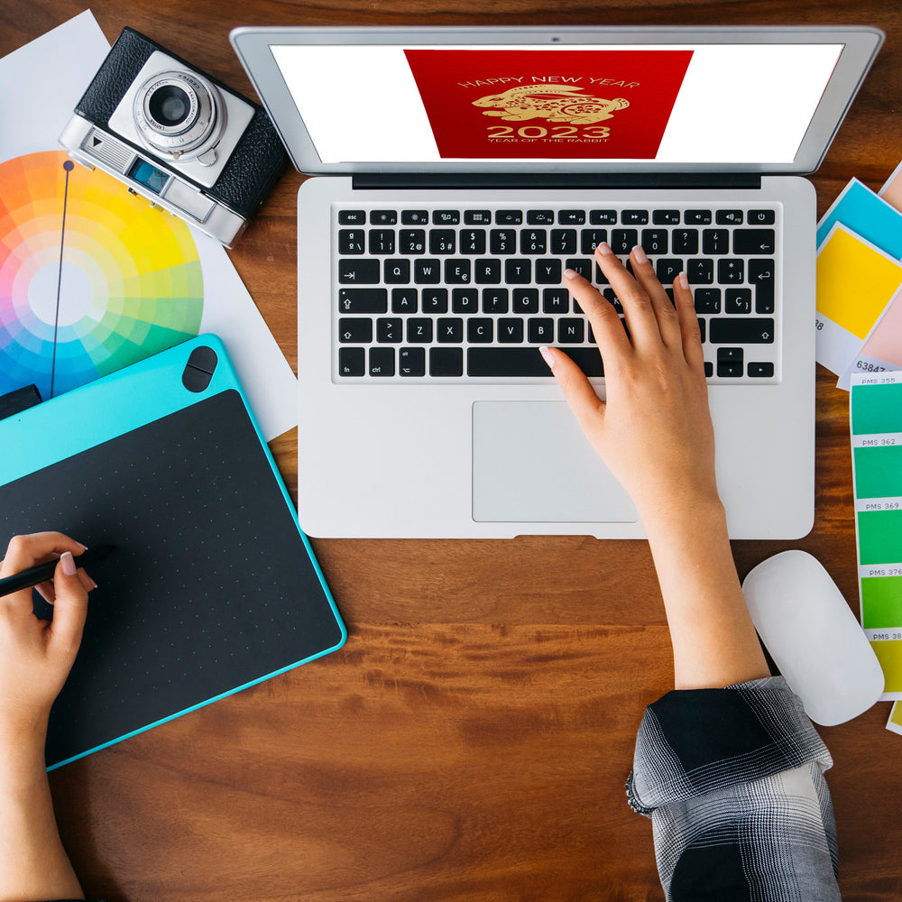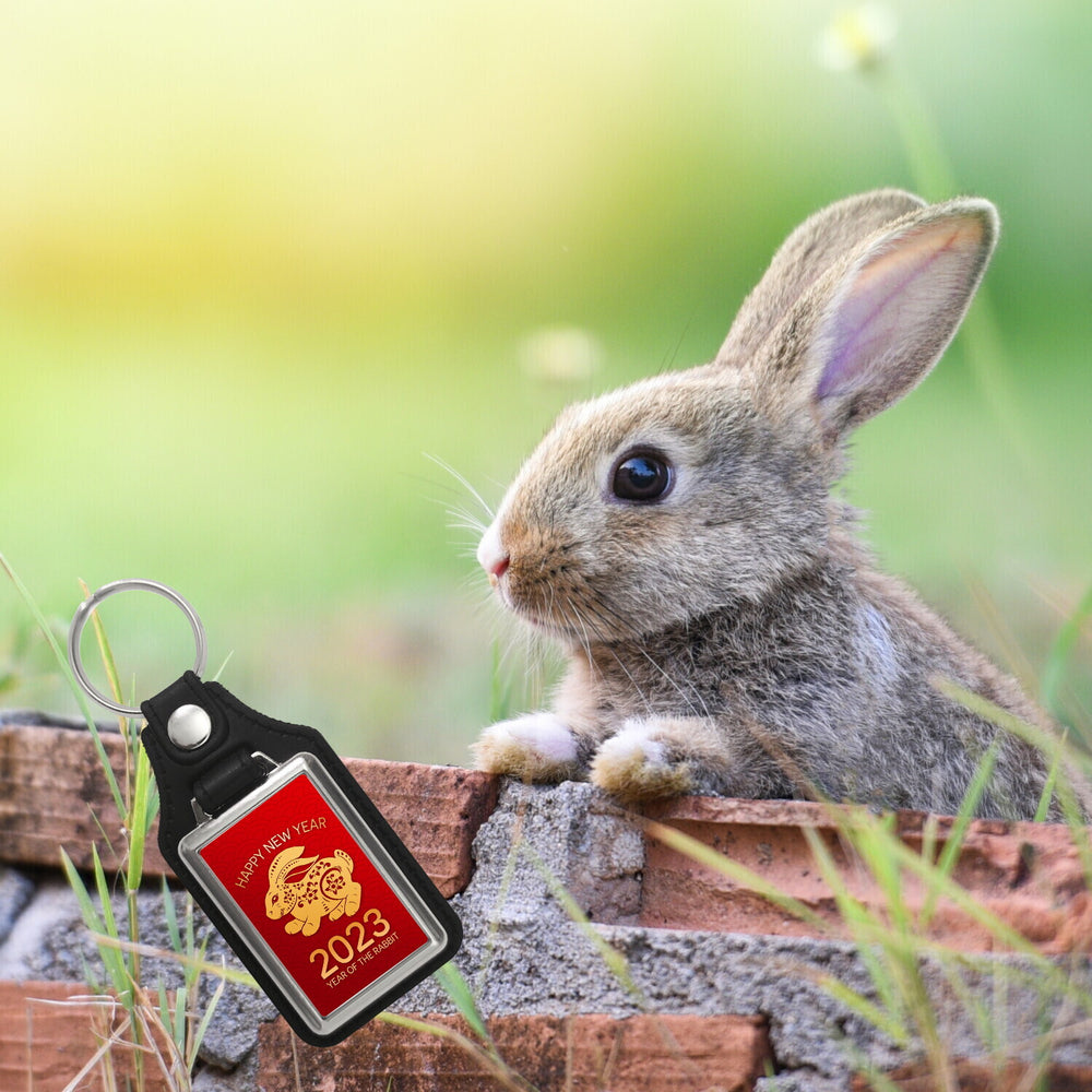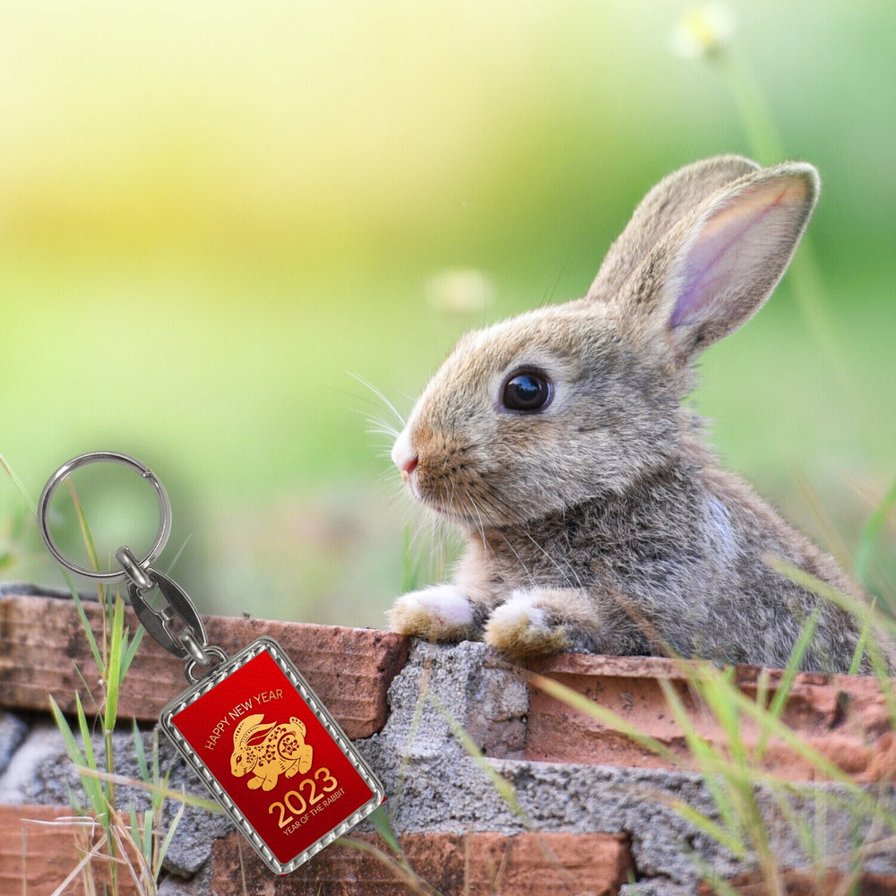 - 1x Happy New Year of the Rabbit 2023 Schlüsselanhänger mit Kaninchen in der gewählten Ausführung
