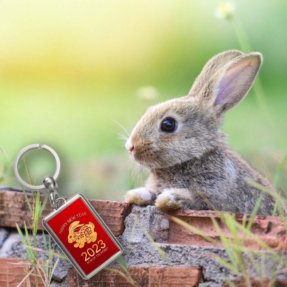 Happy New Year of the Rabbit 2023 Schlüsselanhänger mit Kaninchen - Standard ist auf Lager und wird versandt, sobald es wieder verfügbar ist