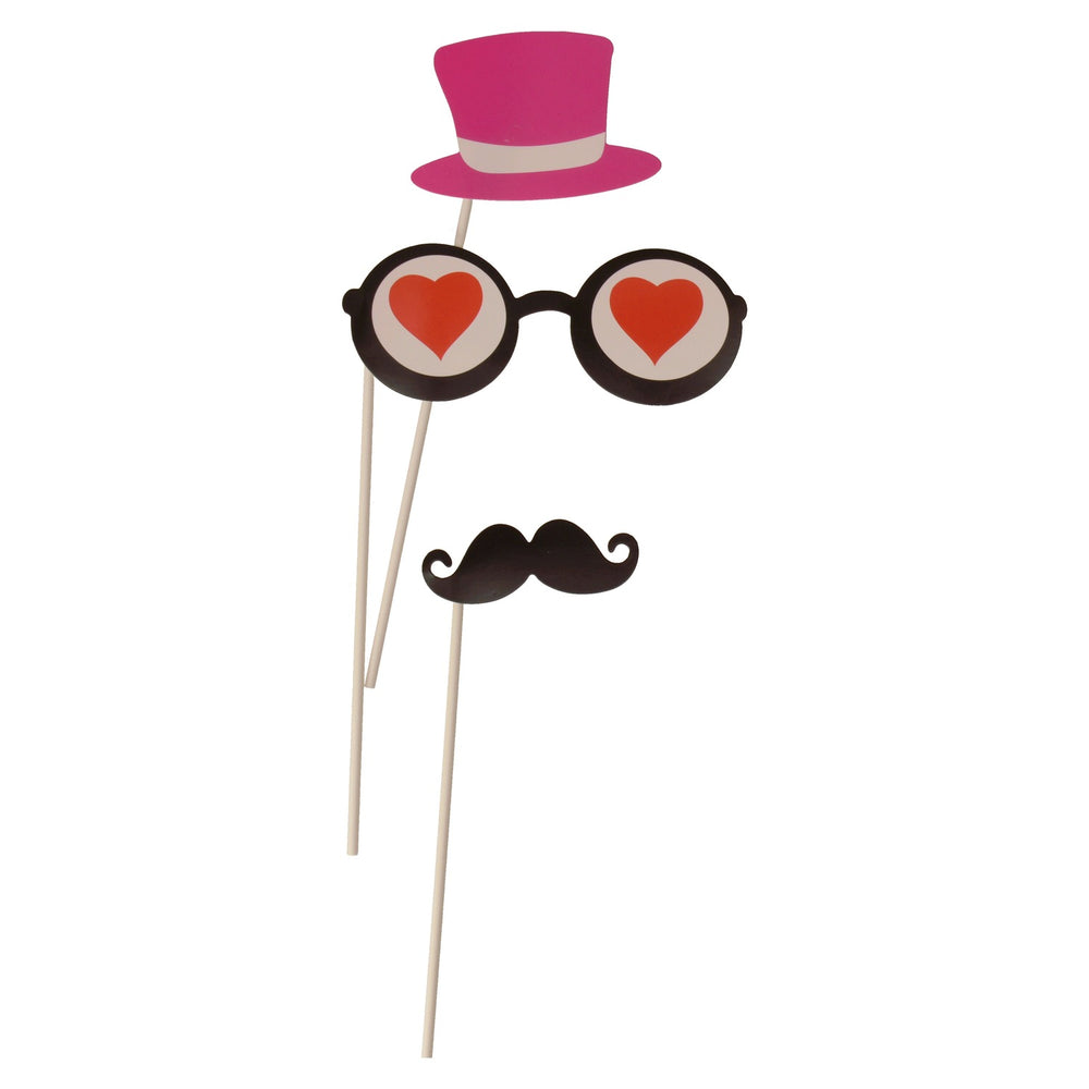 Mit dem 12er Set Liebe Foto Verkleidungen steht man im Blitzlichtgewitter. Material: Papier