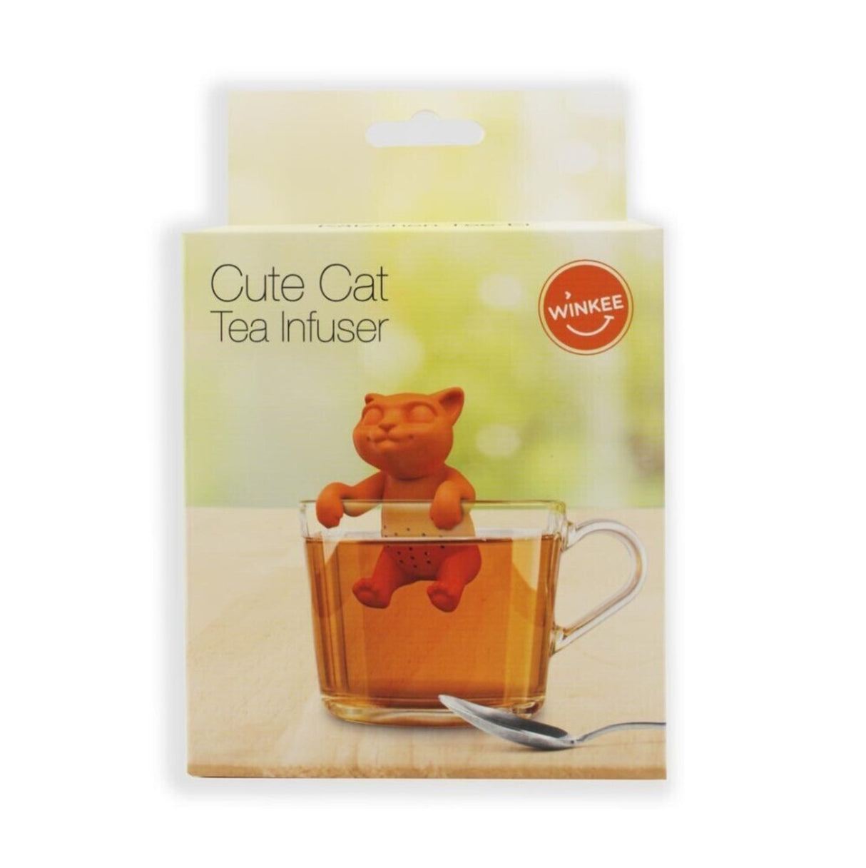 Der Katze Teesieb ist ein witziges und praktisches Accessoire für deine Teetasse. Die silikonbeschichtete Katze in Orange hat eine Größe von ca. 7 cm und hält sich mit den Vorderbeinen am Rand deiner Tasse fest. Mit dem Hintern im Tee kannst du so ganz einfach deinen Tee ziehen lassen. Nach dem Gebrauch kannst du den Teesieb auch ganz leicht reinigen und wiederverwenden. Dieser süße Teebereiter ist ein toller Blickfang und macht deine Teetasse zu etwas ganz Besonderem!