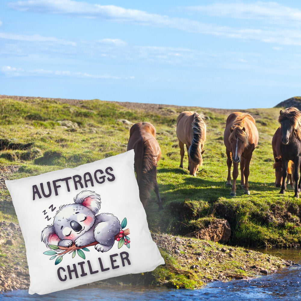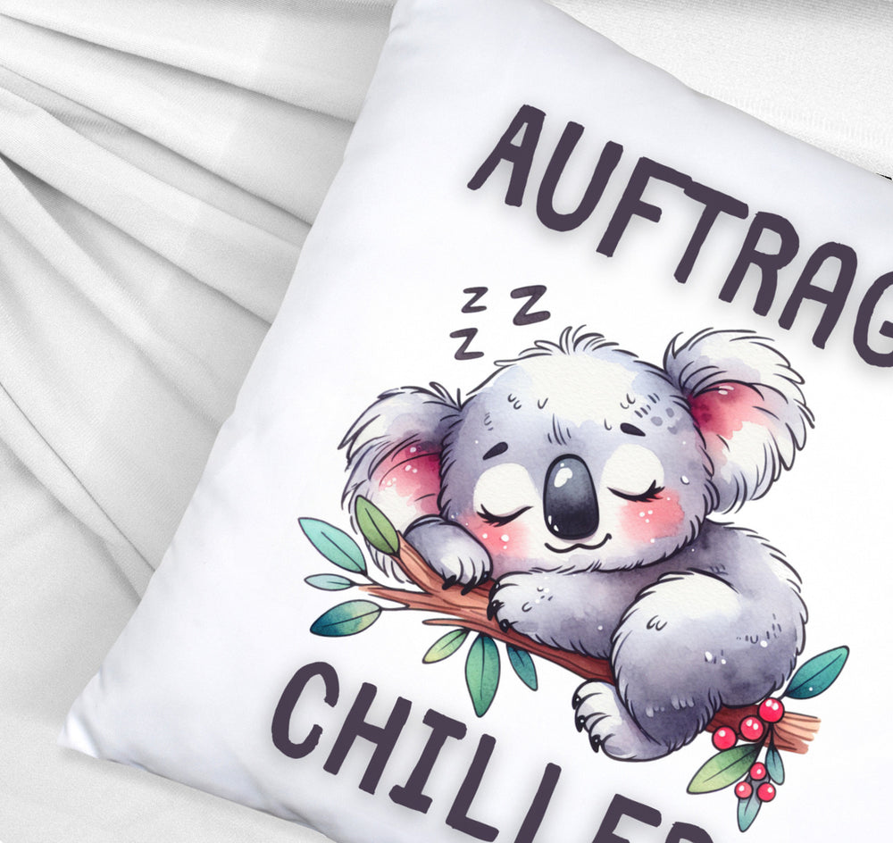 Schlafender Koala Kissen mit Spruch Auftragschiller