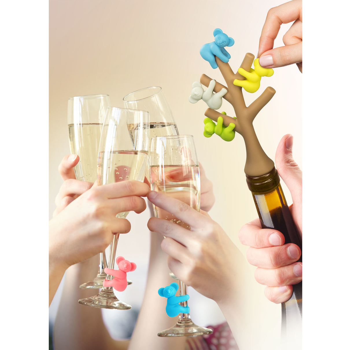 - Lieferumfang: 1x 5er Set Koala Glasmarkierer bestehend aus 1x Flaschenverschluss und 5x Koala Glasmarkierer.