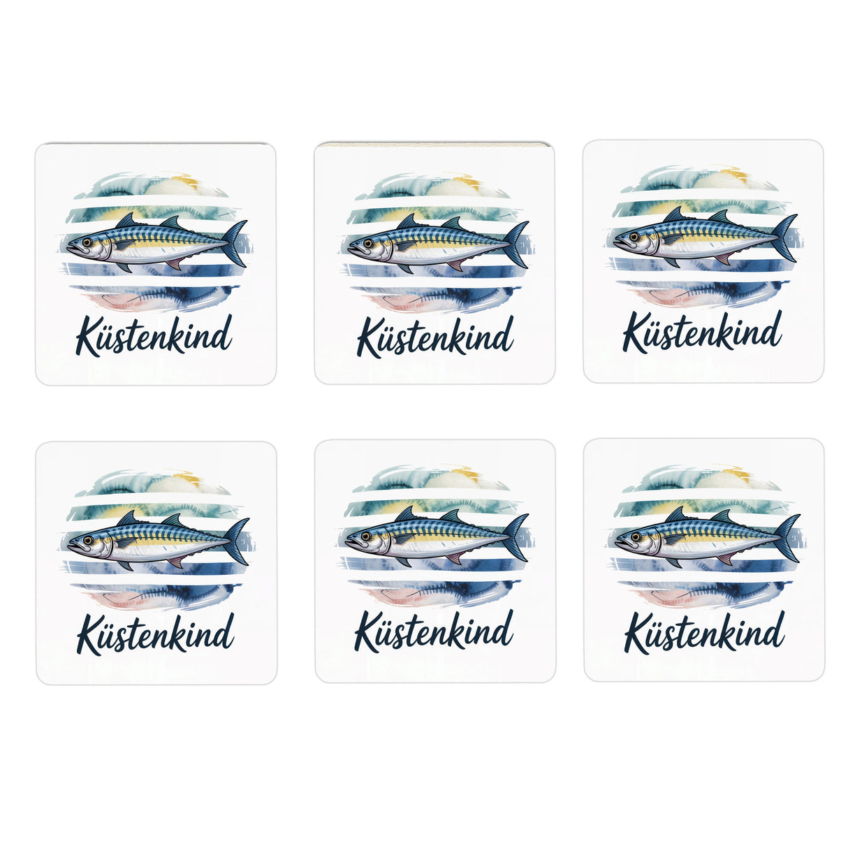 - Lieferumfang: 1x Makrele 6er Set Untersetzer aus Holz - Küstenkind