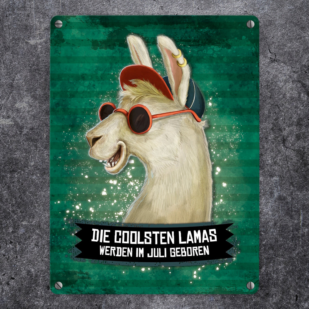 - 1x Metallschild mit Spruch: Die coolsten Lamas werden im Juli geboren in der gewählten Größe