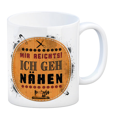 Kaffeebecher mit Spruch: Mir reicht's! Ich geh nähen