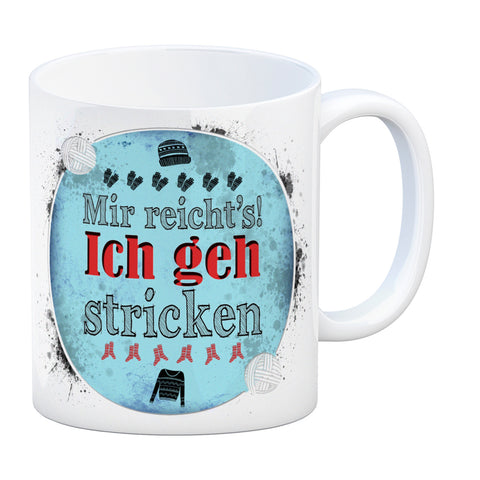 Kaffeebecher mit Spruch: Mir reicht's! Ich geh stricken