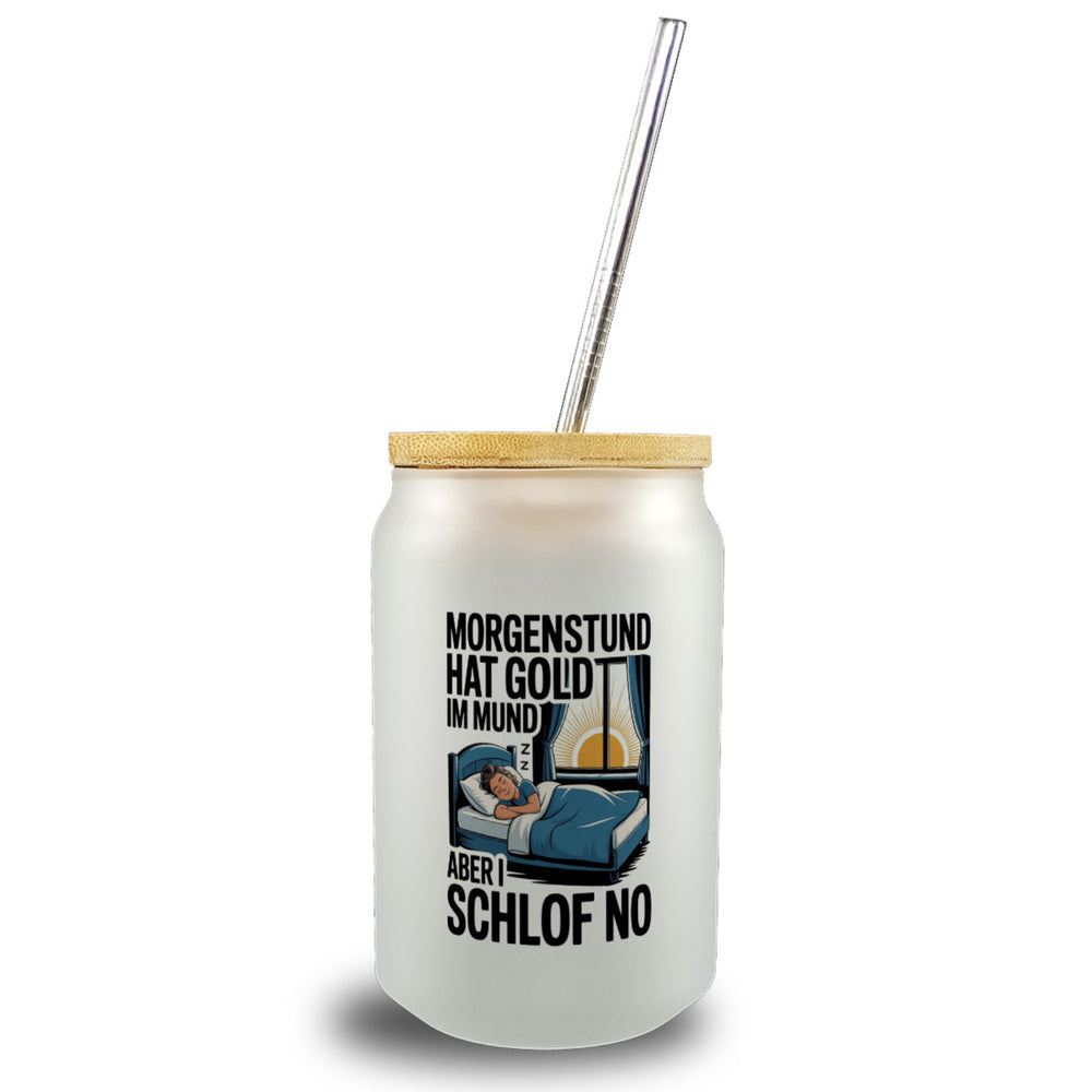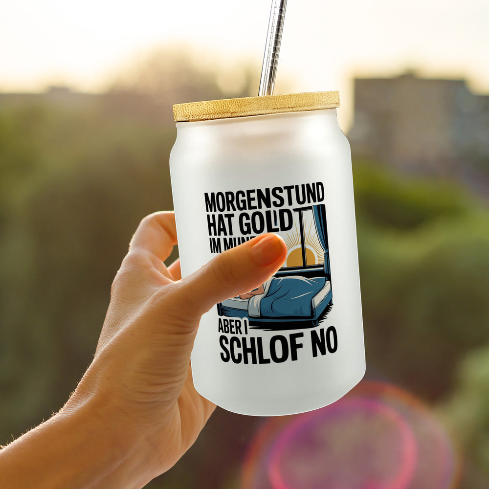 Morgenstund hat Gold im Mund, I schlof no Trinkglas mit Bambusdeckel Schlafende Person - Bambusdeckel ist auf Lager und wird versandt, sobald es wieder verfügbar ist