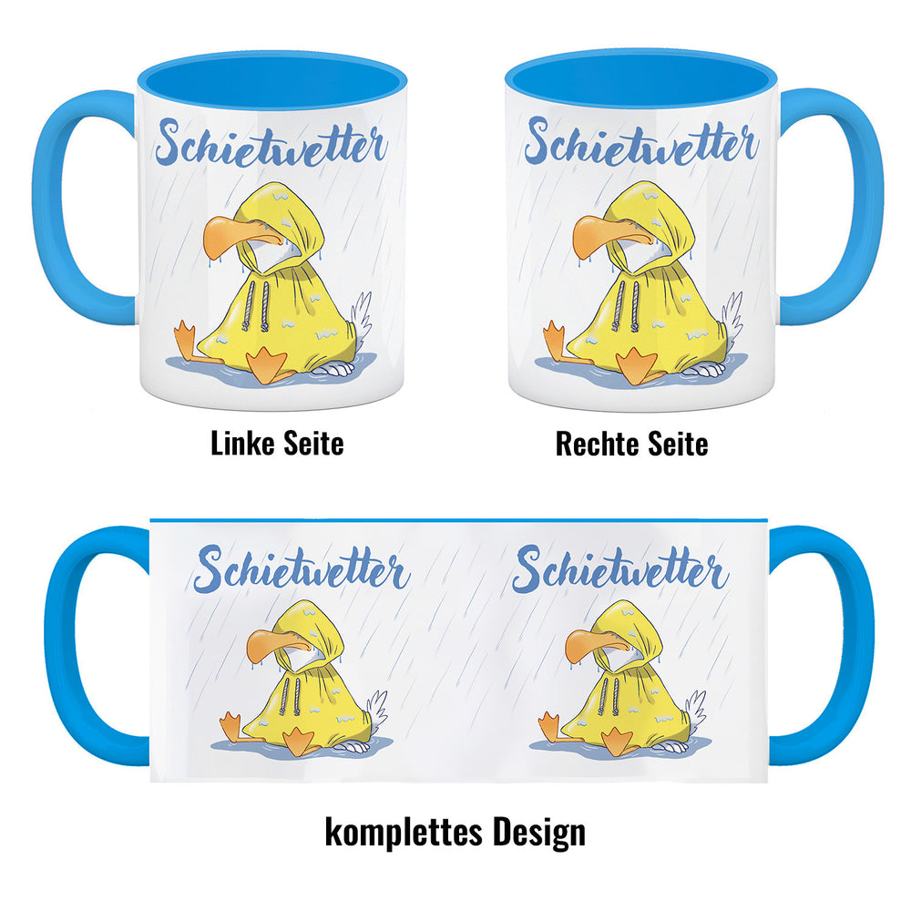 Möwe Kaffeebecher mit Spruch Schietwetter