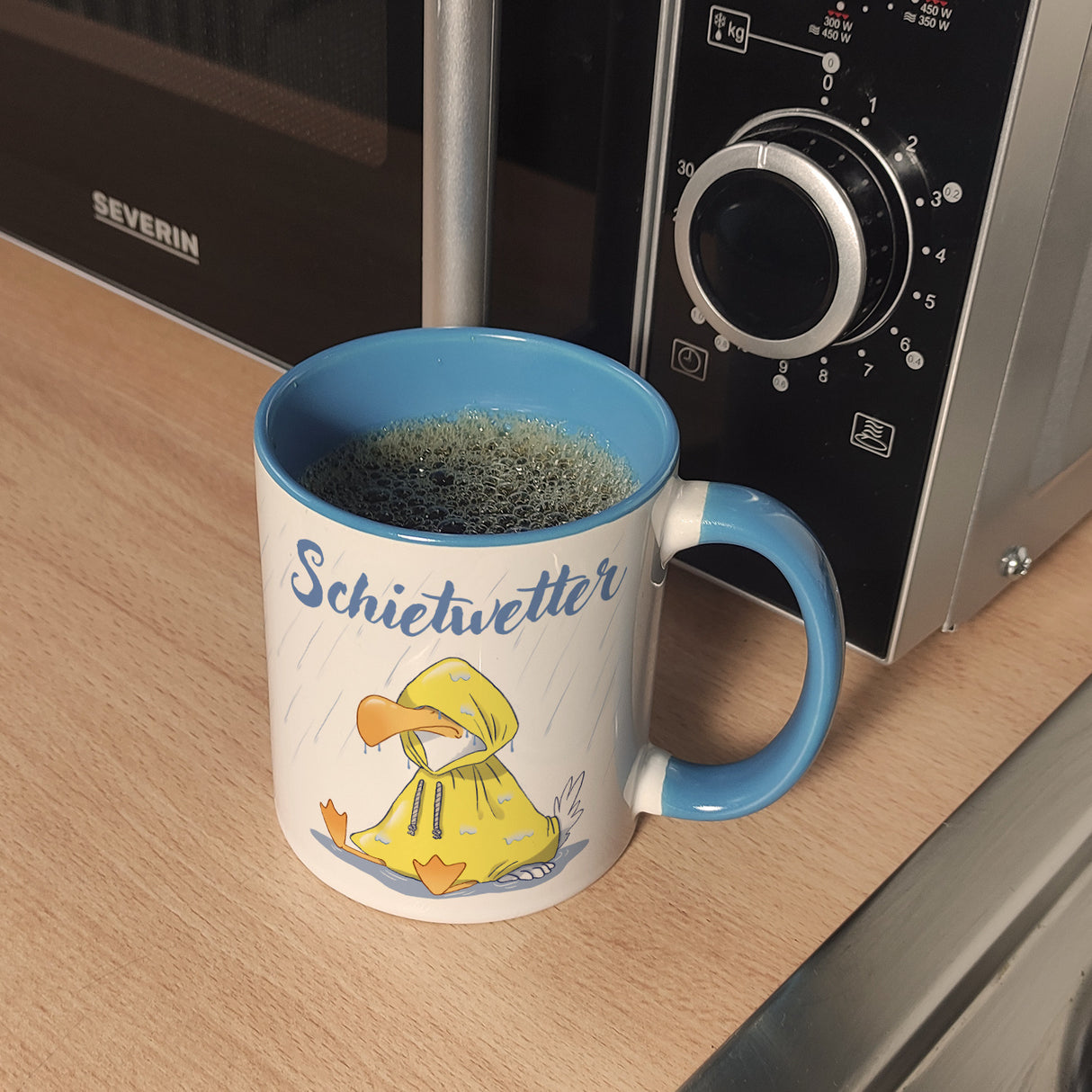 - 1x Möwe Kaffeebecher mit Spruch Schietwetter in der gewählten Ausführung