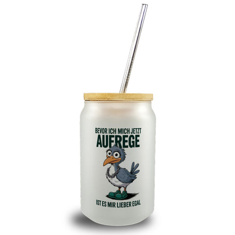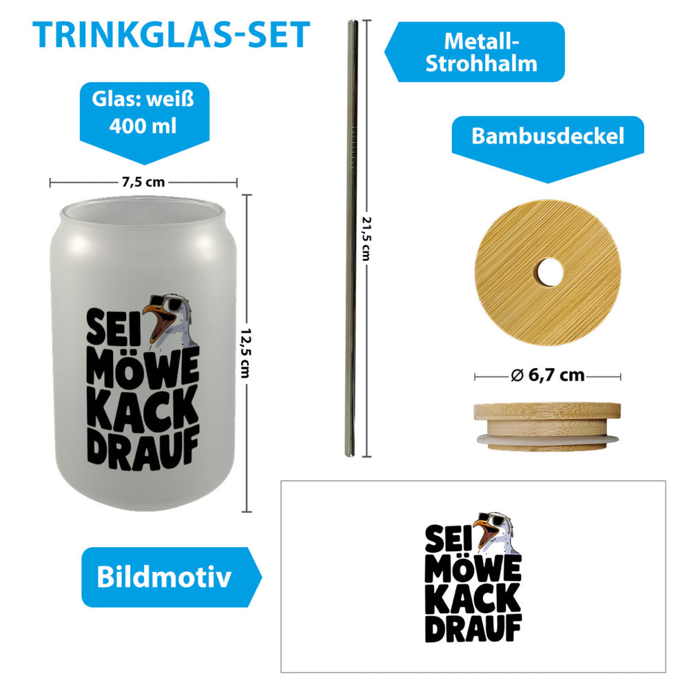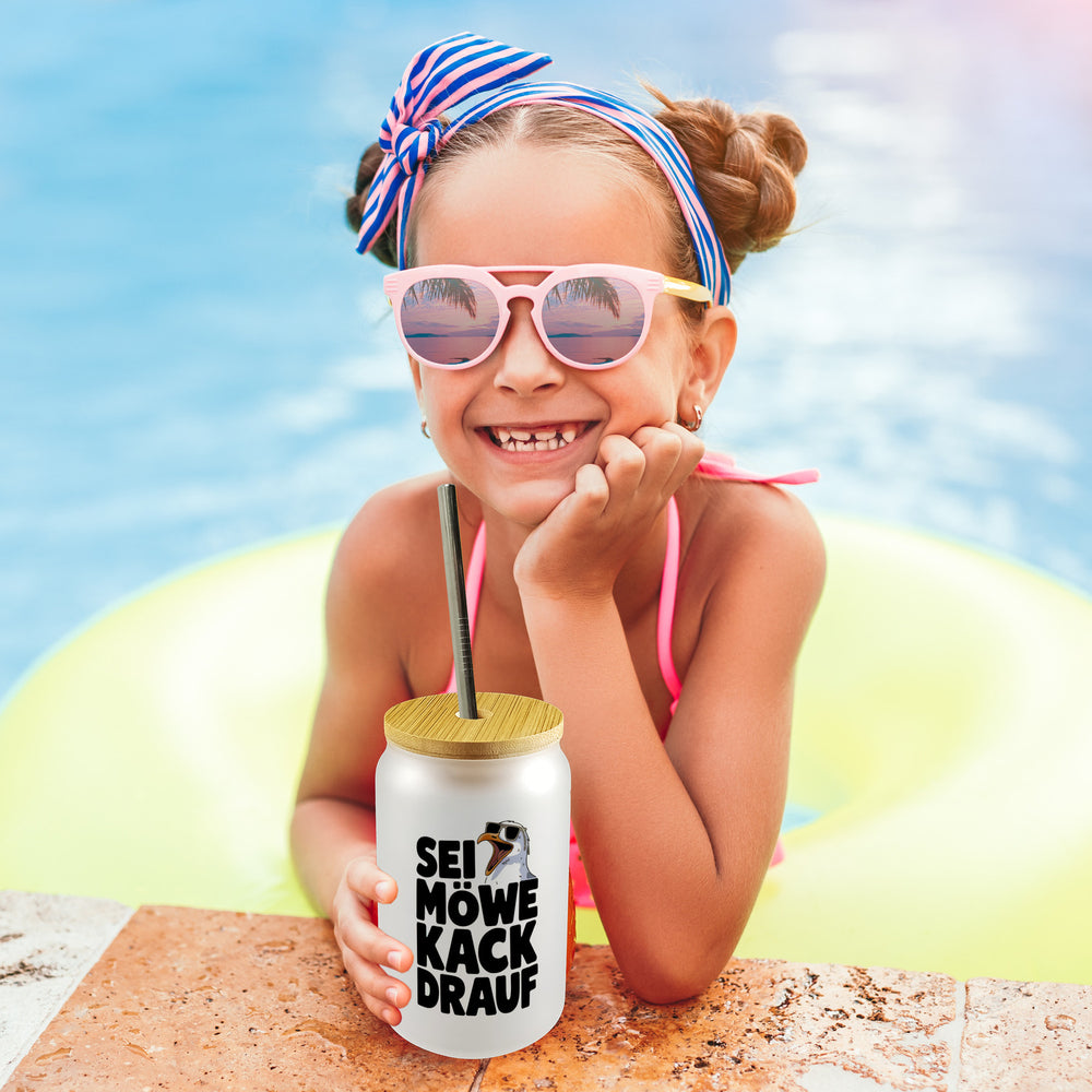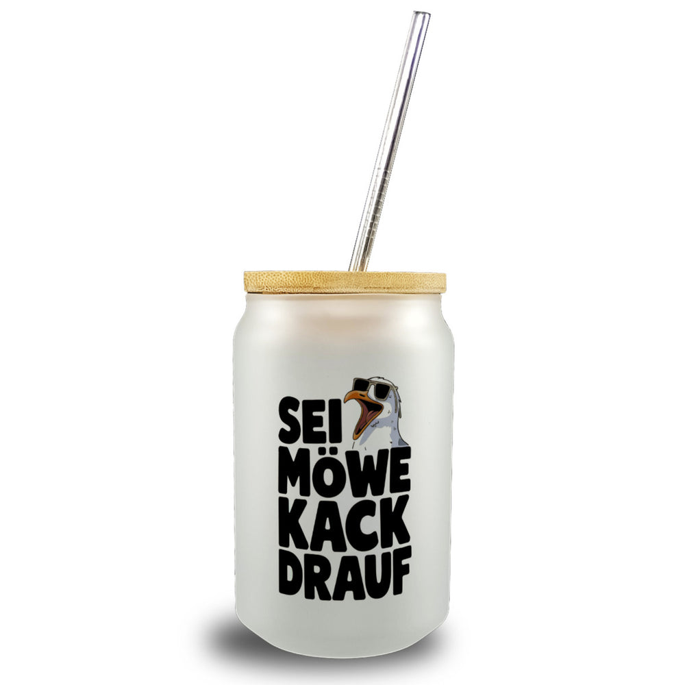 Möwe Sonnenbrille kack drauf Trinkglas mit Bambusdeckel für Möwenfans