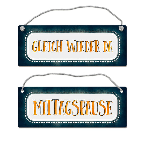 Mittagspause oder Gleich wieder da Wendeschild mit Kordel für die Bürotüre