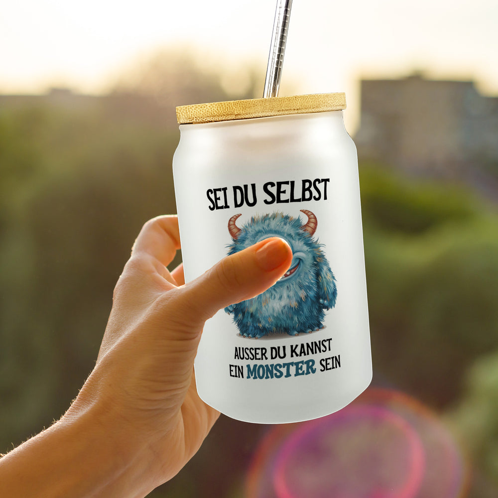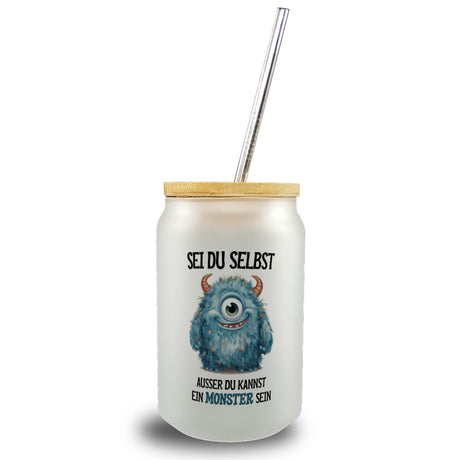- 1x Sei du selbst außer du kannst ein Monster sein Trinkglas mit Bambusdeckel mit Bambusdeckel oder Henkel