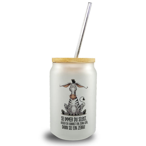 Sei immer du selbst ausser du kannst ein Zebra sein dann sei ein Zebra Trinkglas mit Bambusdeckel