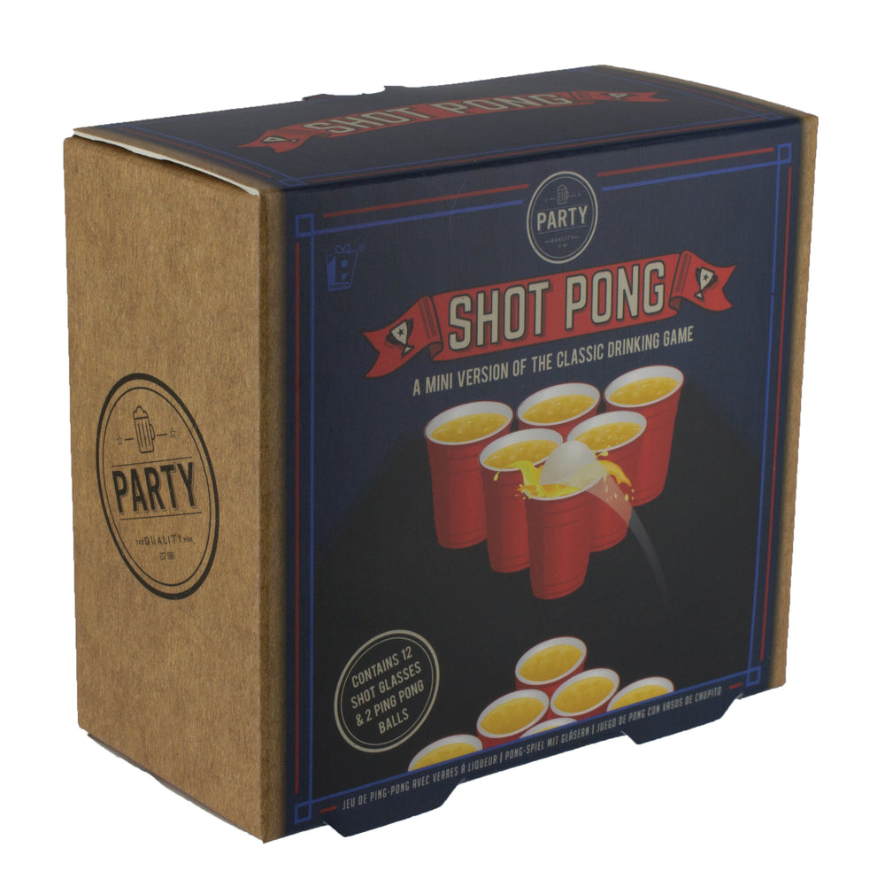 - Lieferumfang: 1x Shot Pong Trinkspiel bestehend aus 12x Schnapsglas und 2x Ball. Eine englische Bedienungsanleitung befindet sich auf der Verpackung.