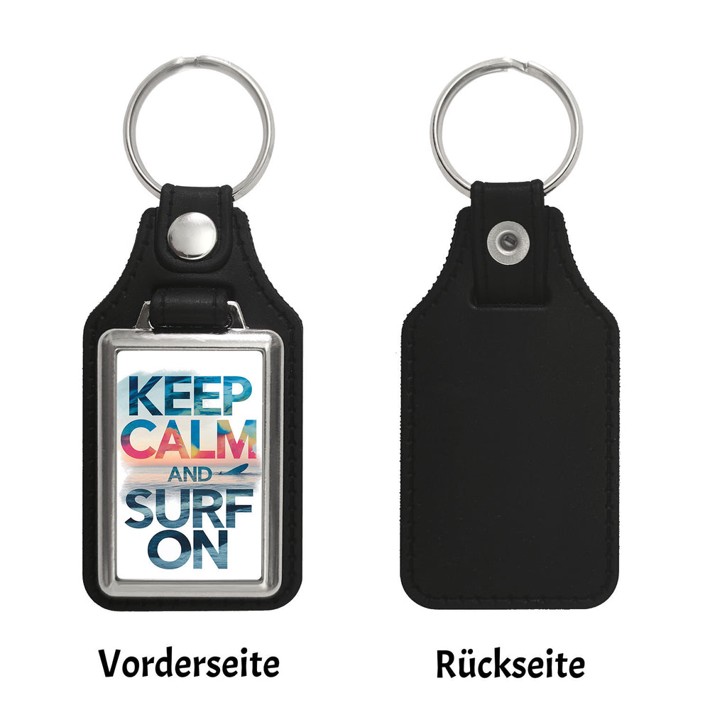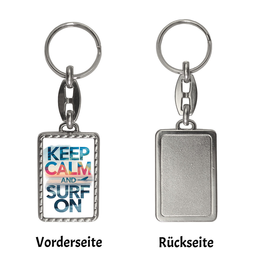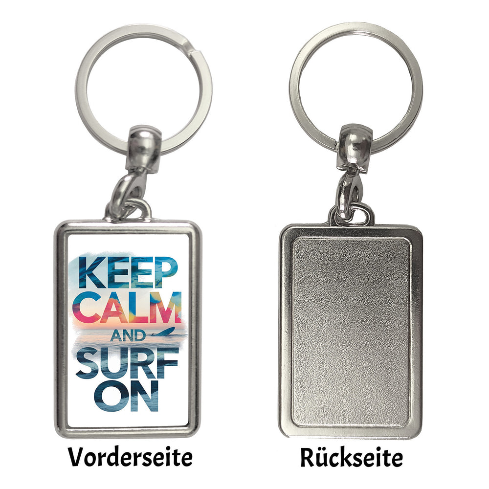 - 1x Surfer auf Welle Keep Calm and surf on Schlüsselanhänger in der gewählten Ausführung