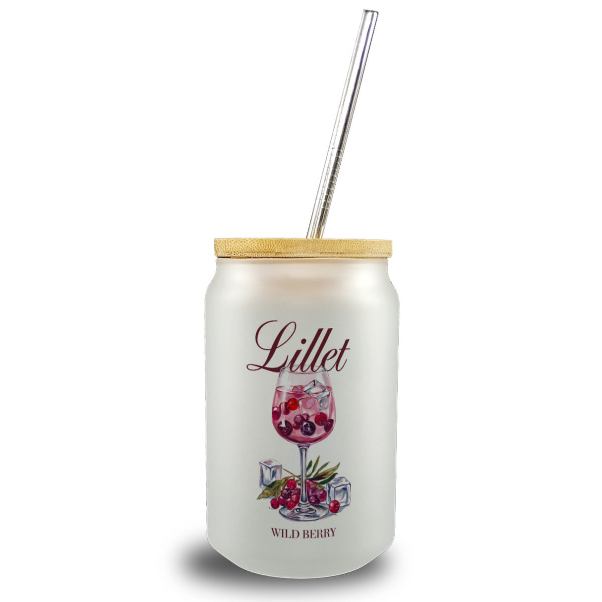 Weinglas mit Beeren - Lillet Wild Berry Trinkglas mit Bambusdeckel - Bambusdeckel ist auf Lager und wird versandt, sobald es wieder verfügbar ist