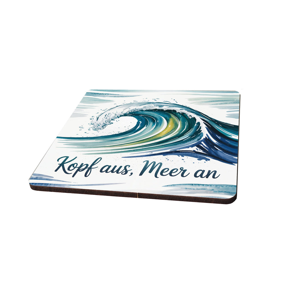 Wellen 6er Set Untersetzer aus Holz - Kopf aus, Meer an