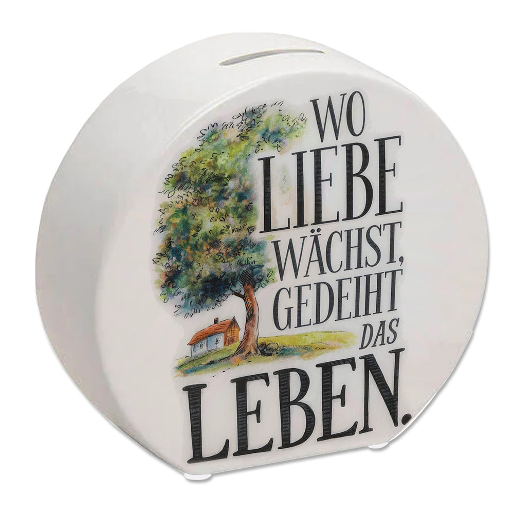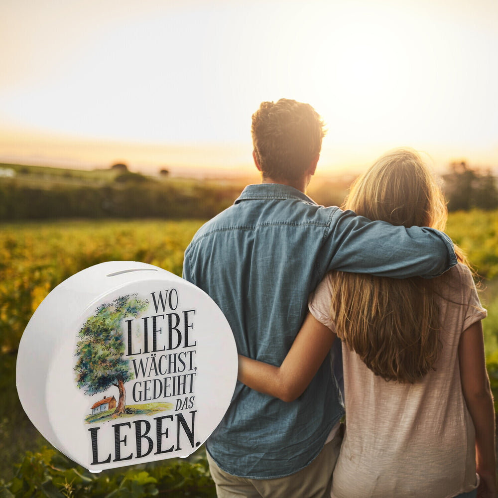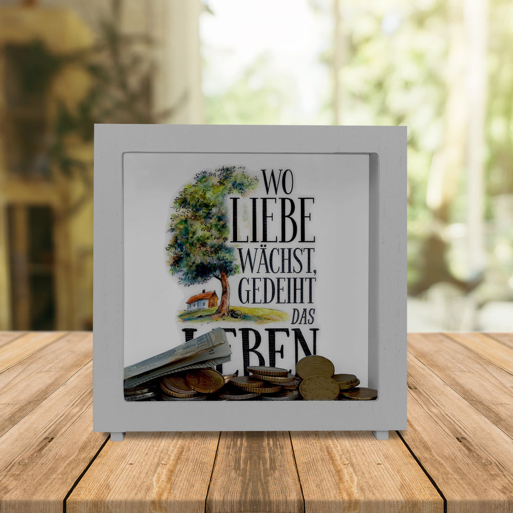 Wo Liebe wächst Spardose Blühender Baum