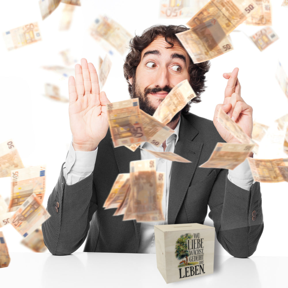 Stellen Sie sich eine Spardose vor, die nicht nur Ihre Ersparnisse beherbergt, sondern auch ein Kunstwerk in Ihrem Zuhause darstellt! Wo Liebe wächst ist mehr als nur eine gewöhnliche Spardose – es ist eine Hommage an das Wachstum der Liebe und der kleinen Freuden des Lebens. Diese kunstvoll bedruckte Spardose zeigt einen farbenfrohen Baum voller Leben und ein gemütliches Haus auf einem sanften Aquarellhintergrund. Der inspirierende Spruch Wo Liebe wächst, gedeiht das Leben erinnert jeden Tag daran, dass aus kleinen Dingen Großes entstehen kann. Erhältlich in drei Varianten – schlichtes Holz, elegante ovale Keramik, oder als exklusive Rahmen-Variante mit Sichtfenster – ist diese Spardose perfekt für Geldgeschenke und persönliche Einsparungen. In Deutschland mit Liebe gefertigt, ist sie das ideale Geschenk für Romantiker, Naturliebhaber und alle, die an die Kraft der Liebe glauben. Platzieren Sie diese charmante Spardose in Ihrem Wohnzimmer oder Schlafzimmer und beobachten Sie, wie sie nicht nur Ihre Münzen, sondern auch Träume und Wünsche wachsen lässt. Ob als Valentinsgruß oder Hochzeitsgeschenk – diese Spardose bringt ein Lächeln auf jedes Gesicht und lässt Träume in Erfüllung gehen. Machen Sie aus dem Sparen ein emotionales Erlebnis und erleben Sie die Magie der Liebe!