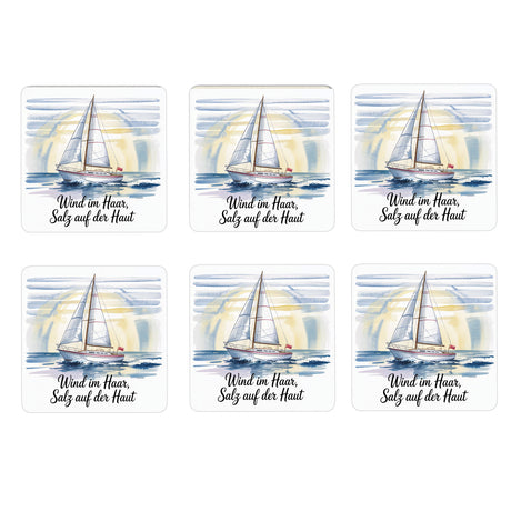 €9,95Grundpreis /Nicht verfügbarAuf LagerSegelboot 6er Set Untersetzer aus Holz - Wind im Haar, Salz auf der Haut