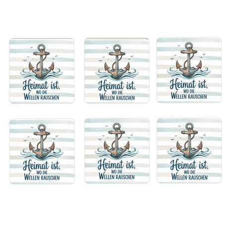 €9,95Grundpreis /Nicht verfügbarAuf LagerAnker 6er Set Untersetzer aus Holz - Heimat ist, wo Wellen rauschen