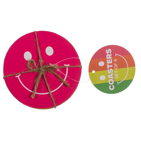 Smile Gesichter Untersetzer in Neon-Farben im 4er Set