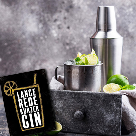 - Metallschild mit Gin Tonic Motiv und Spruch: Lange Rede, kurzer Gin Ab €8,95Grundpreis /Nicht verfügbarAuf Lager