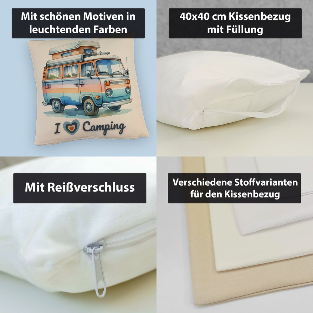 • 1x Campervan Kissen mit Spruch I love Camping in der gewählten Ausführung