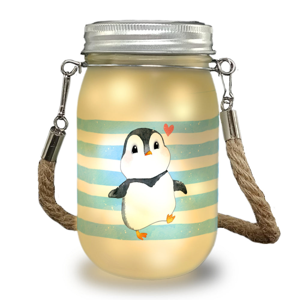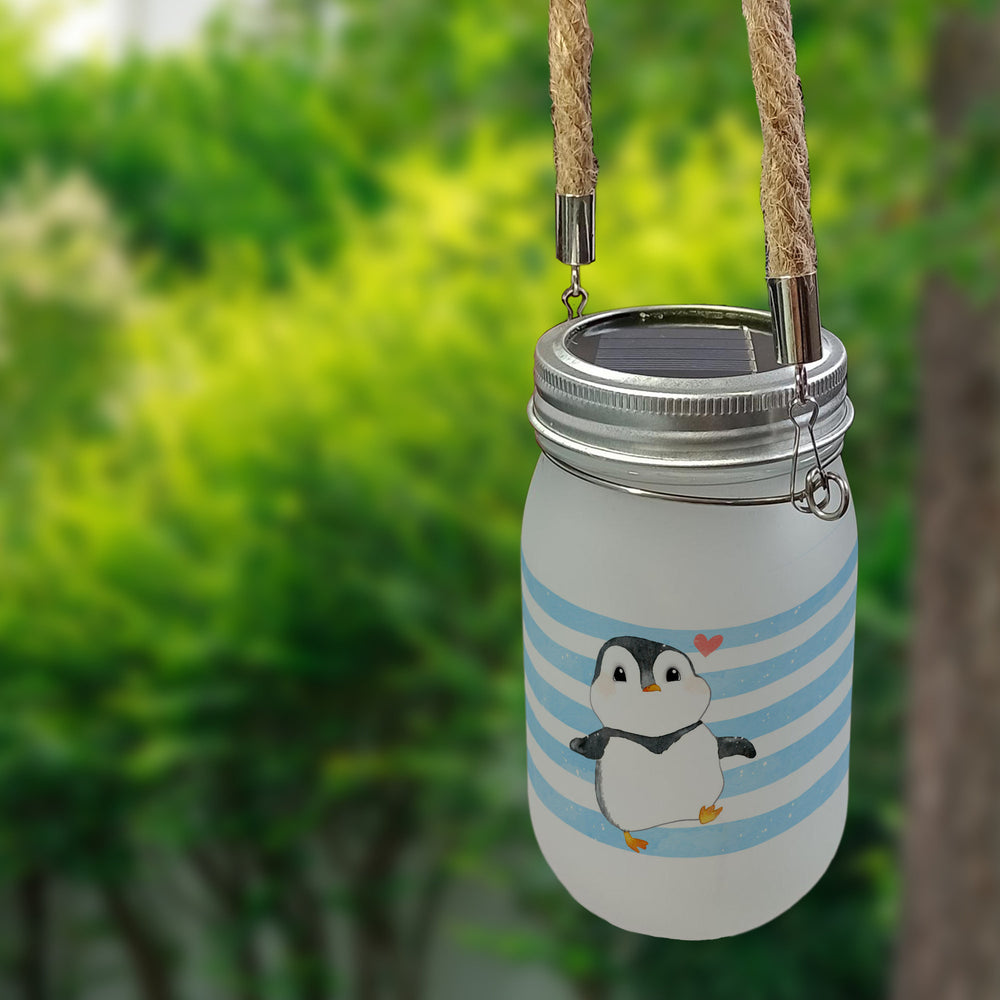 - Unser Solarlicht mit Pinguin-Motiv ist eine wahre Augenweide! Der niedliche Pinguin mit Herz und gestreiftem Hintergrund bringt jeden zum Schmunzeln. Das Einmachglas-Design mit Solar-Deckel und nostalgischem Strick-Henkel verleiht ihm einen Hauch von Vintage-Charme. Ein Dekolicht wie dieses bringt Leben auf jede Terrasse!