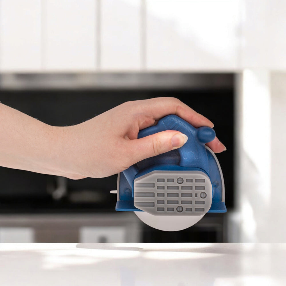 - Unser Pizzaroller sieht aus wie eine kleine Handkreissäge in coolem Blau und Grau. Der integrierte Sägeblattschutz sorgt für Sicherheit, indem er nach dem Schneiden automatisch zurückspringt. Und das Beste? Die Klinge ist leicht entfernbar und somit hervorragend zu reinigen – praktisch und schick!