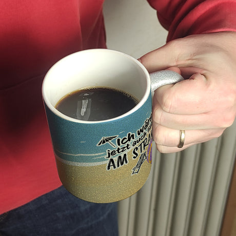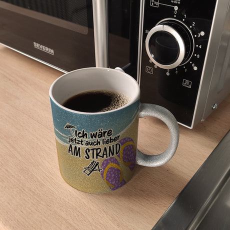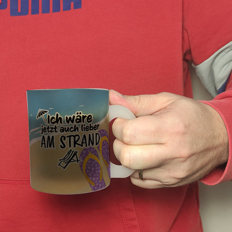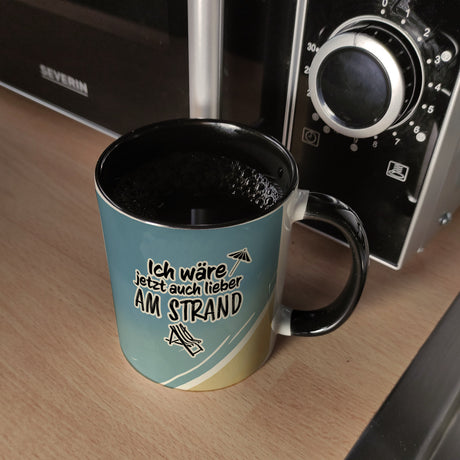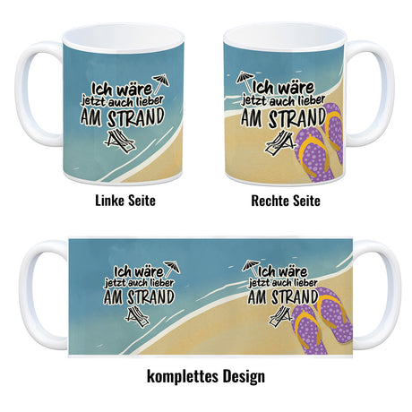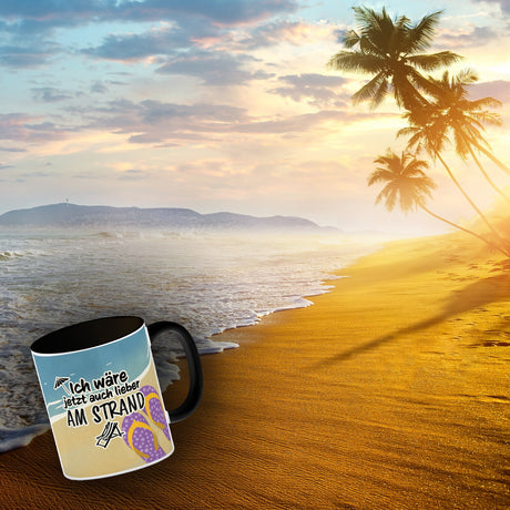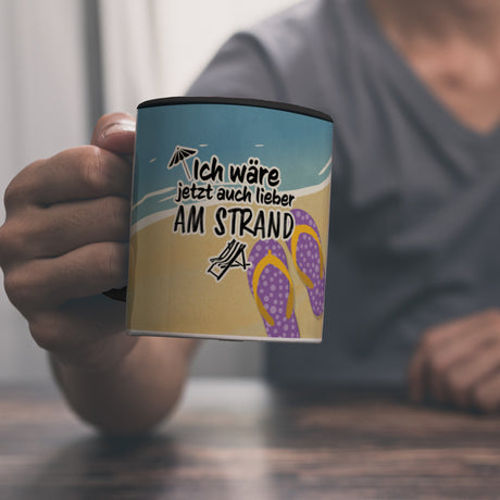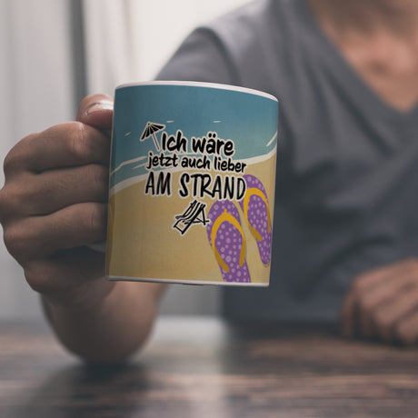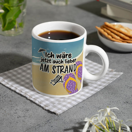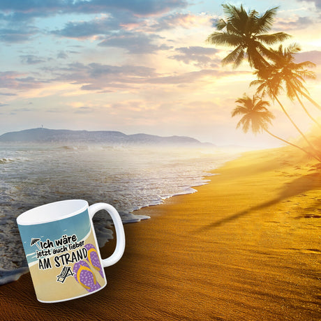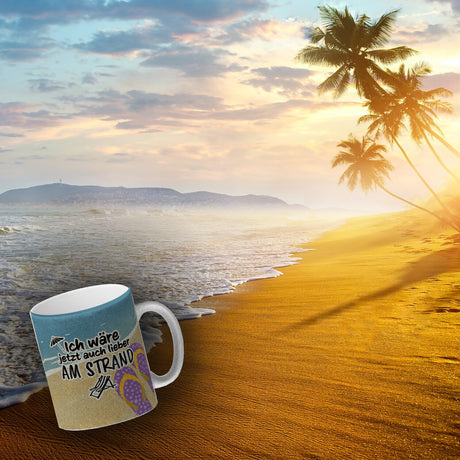 Ich wäre jetzt auch lieber am Strand - Kaffeebecher mit Strandmotiv