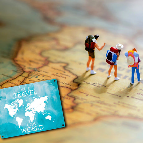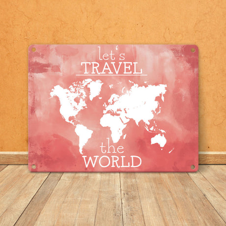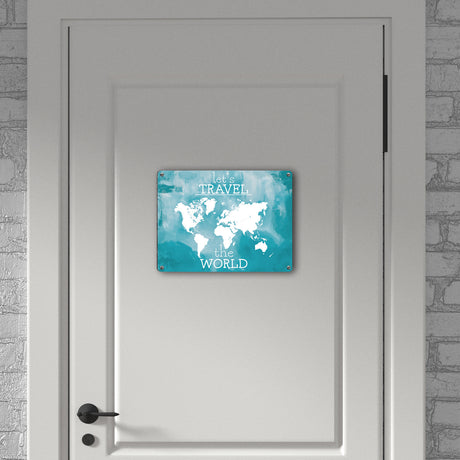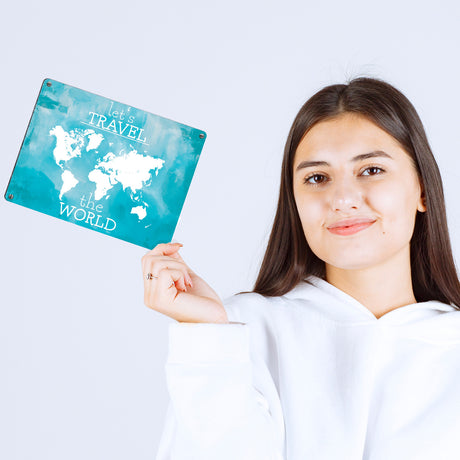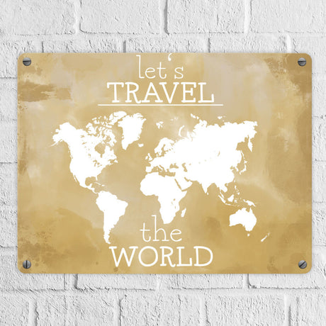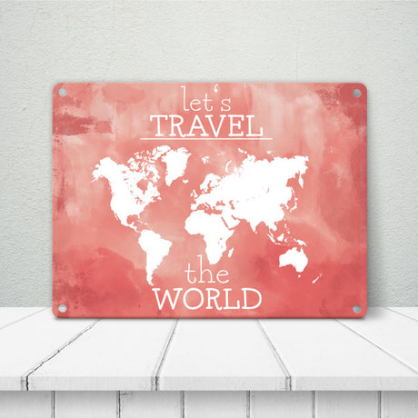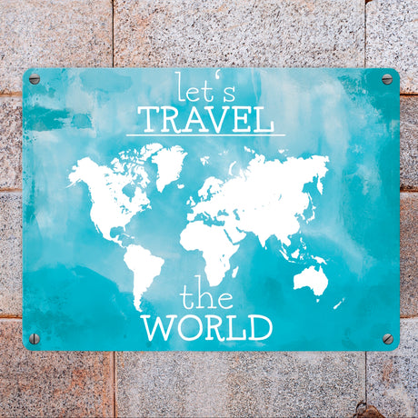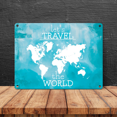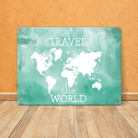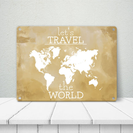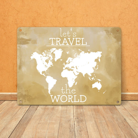 Ab €8,95Grundpreis /Nicht verfügbarAuf LagerMetallschild mit Weltkarte und Spruch - let's travel the world