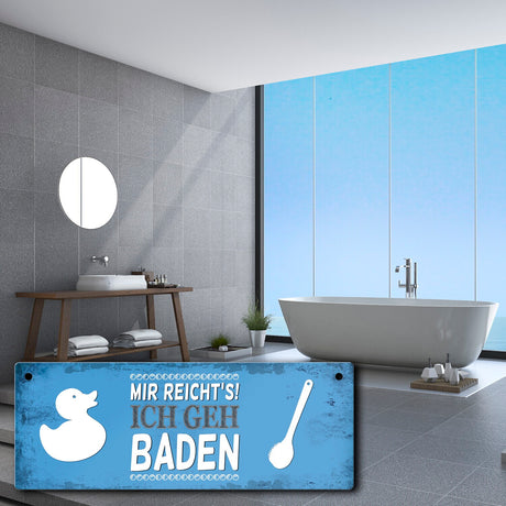 Ab €8,95Grundpreis /Nicht verfügbarAuf LagerMetallschild mit Spruch: Mir reicht's! Ich geh baden