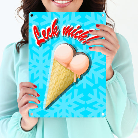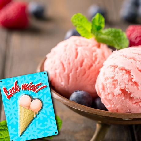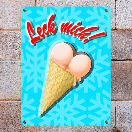 Ab €12,95Grundpreis /Nicht verfügbarAuf LagerMetallschild mit Eis Motiv - Leck mich! Eiskugeln in Form von Hintern