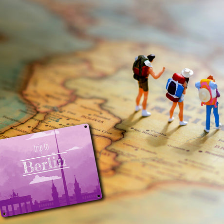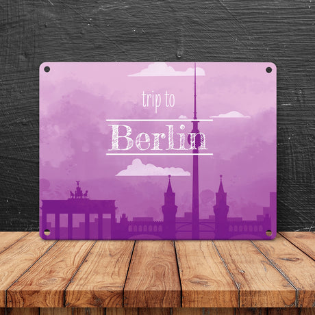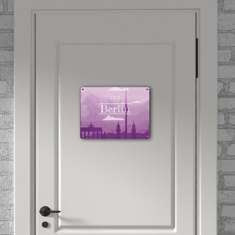 Ab €8,95Grundpreis /Nicht verfügbarAuf LagerMetallschild für Fans von Städtetrips mit der Silhouette von Berlin in lila