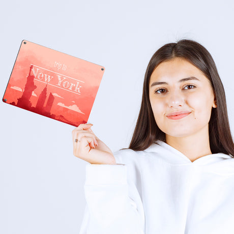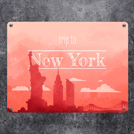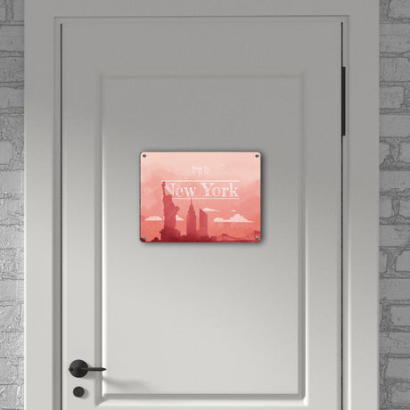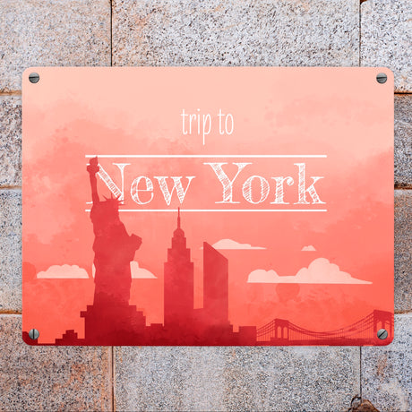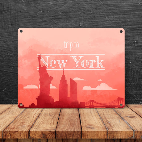 Ab €8,95Grundpreis /Nicht verfügbarAuf LagerMetallschild in 15x20 cm für Fans von Städtetrips mit der Silhouette von New York in orange