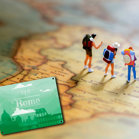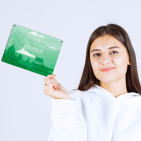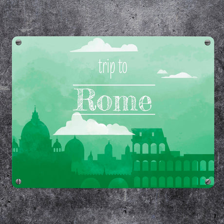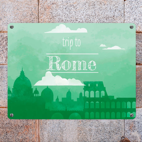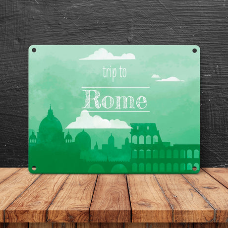 Ab €8,95Grundpreis /Nicht verfügbarAuf LagerMetallschild in 15x20 cm für Fans von Städtetrips mit der Silhouette von Rom