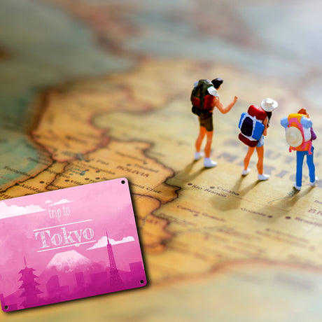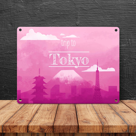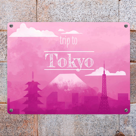 Ab €8,95Grundpreis /Nicht verfügbarAuf LagerMetallschild in 15x20 cm für Fans von Städtetrips mit der Silhouette von Tokyo in pink