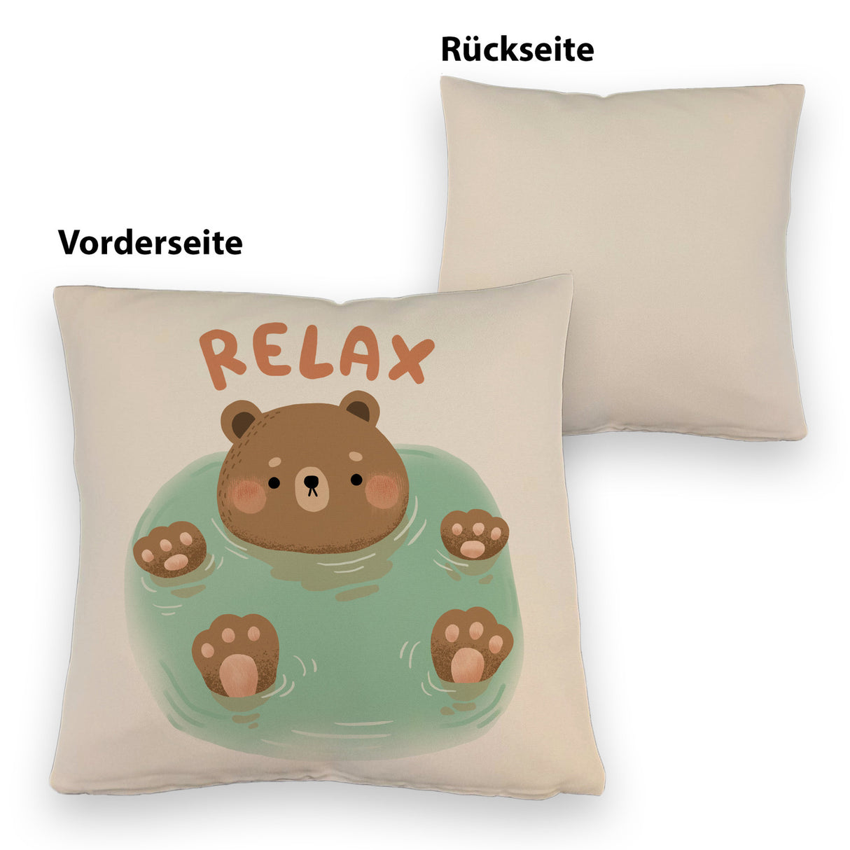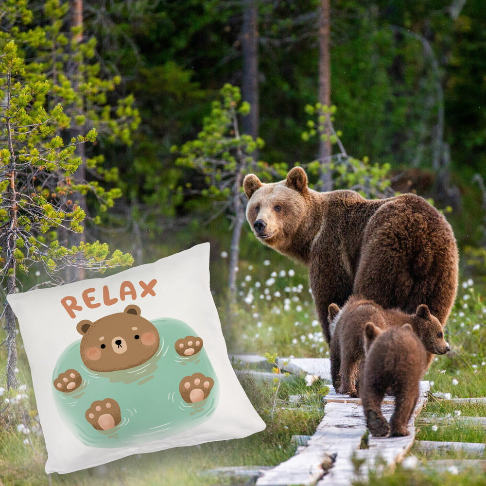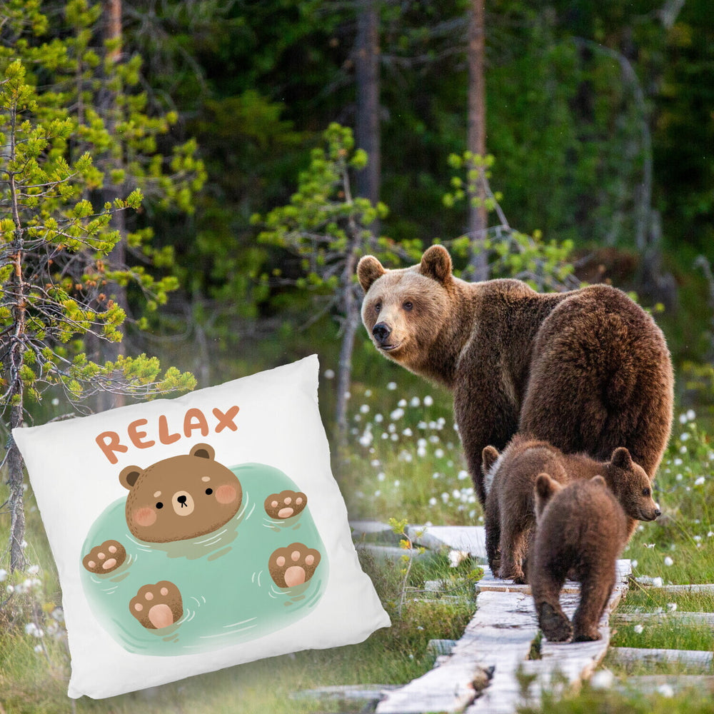 - Dieses Bär Kissen ist der Hit! Ein drolliger Bär treibt gemütlich im Wasser und verbreitet sofort Urlaubsstimmung. Mit dem Spruch "Relax" lädt es zum Chillen und Pause machen ein. Perfekt als Geschenk für alle, die etwas süße Entspannung brauchen.