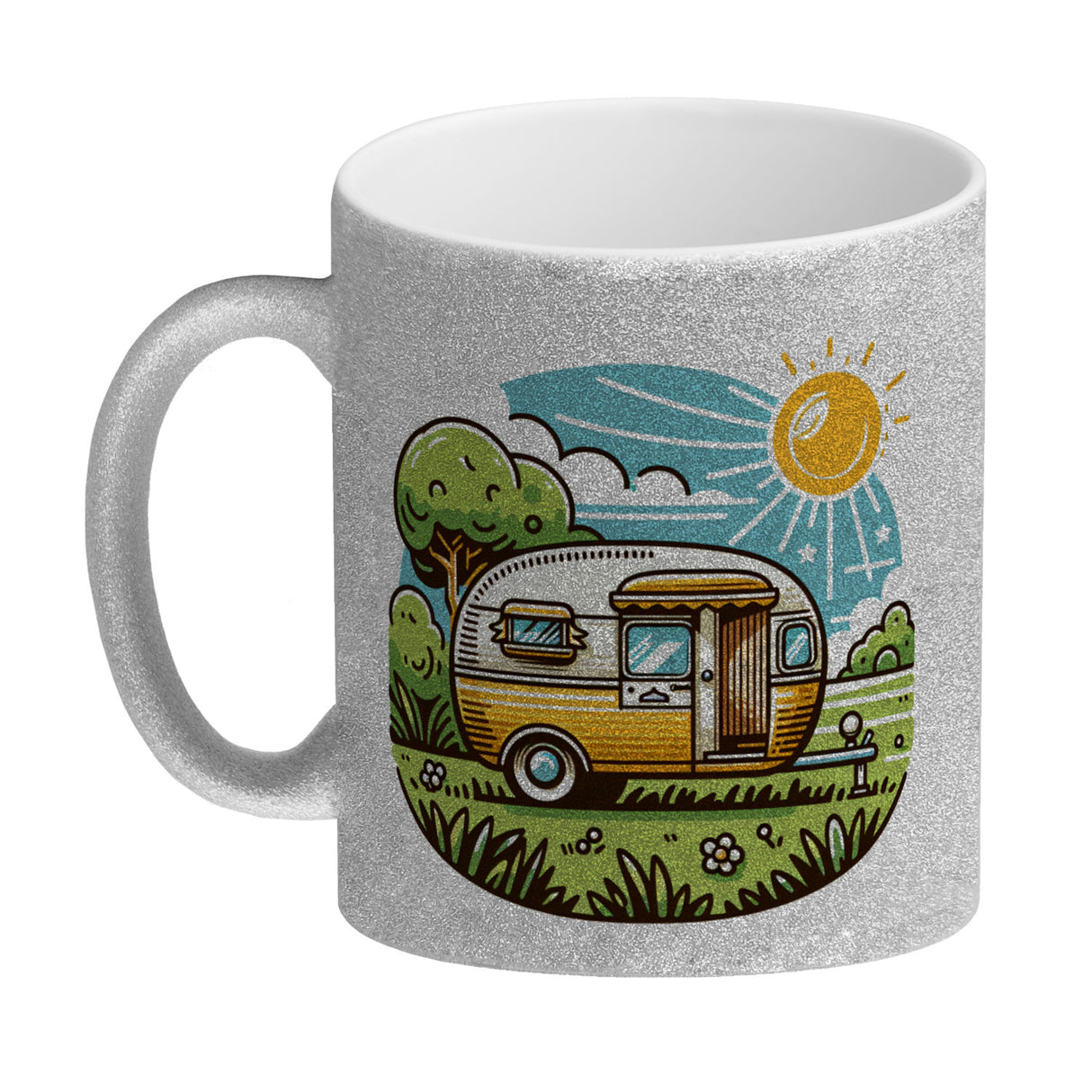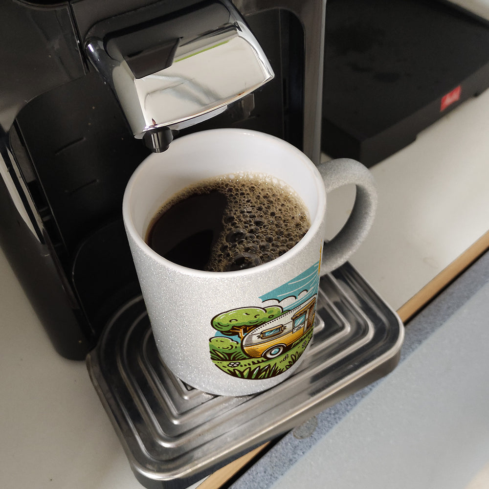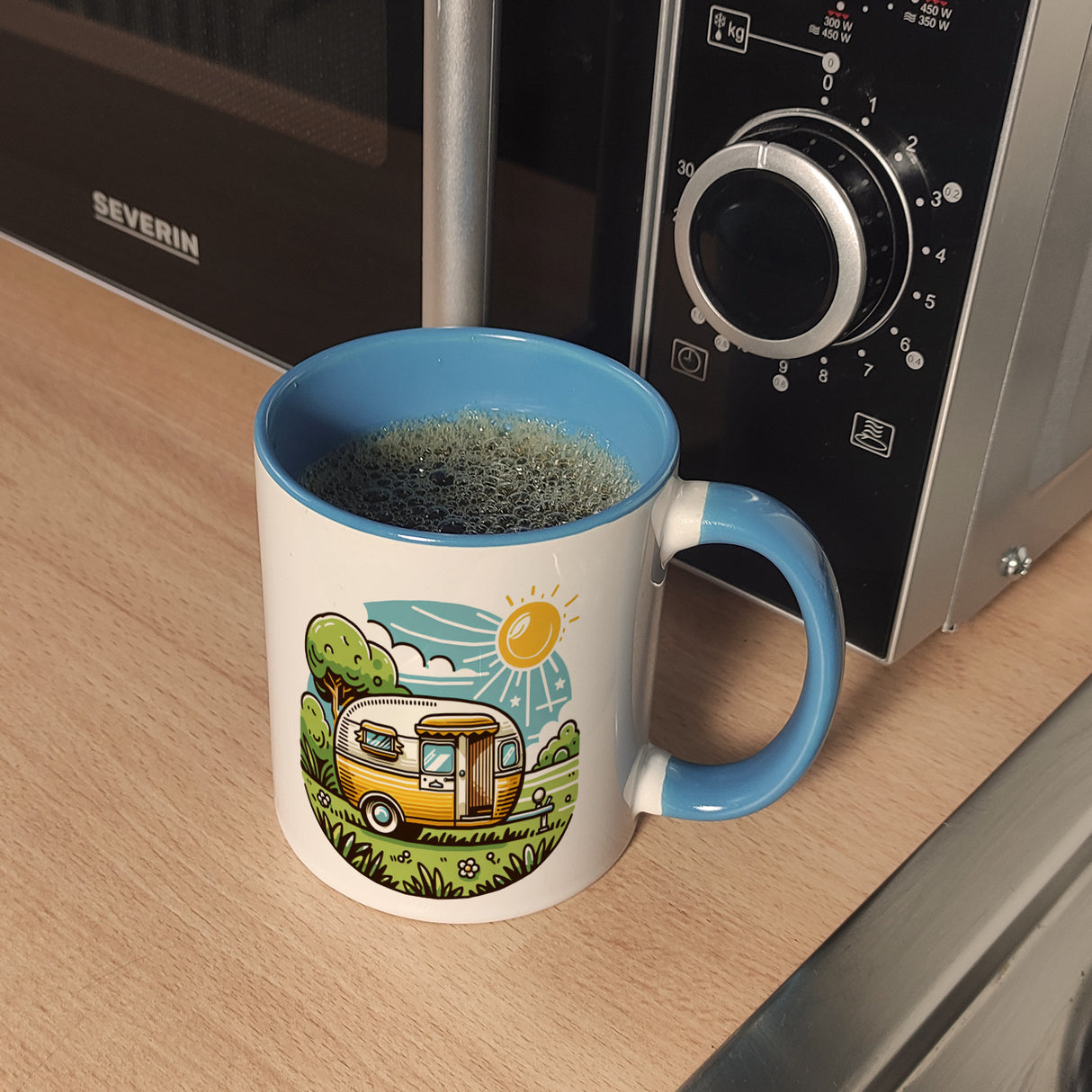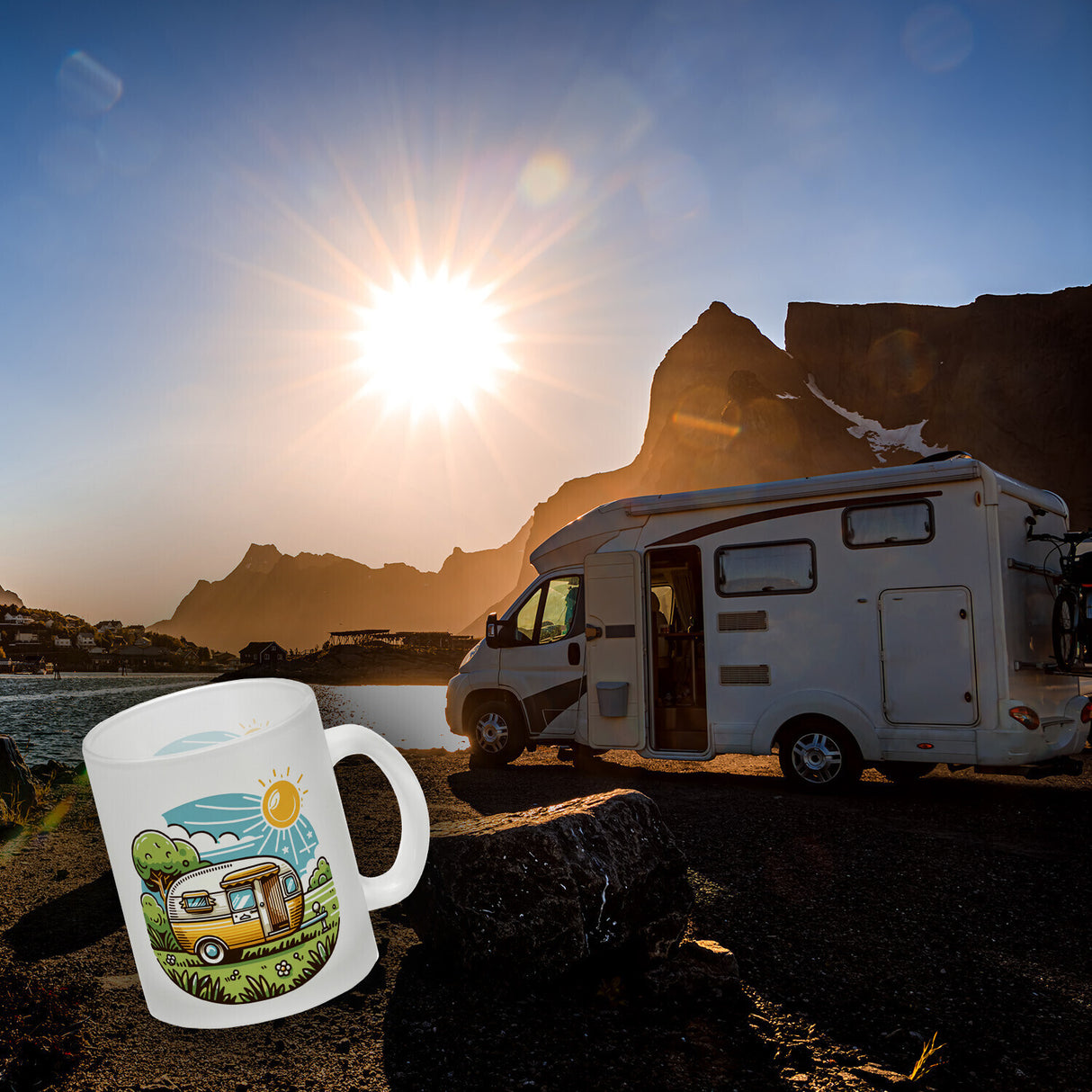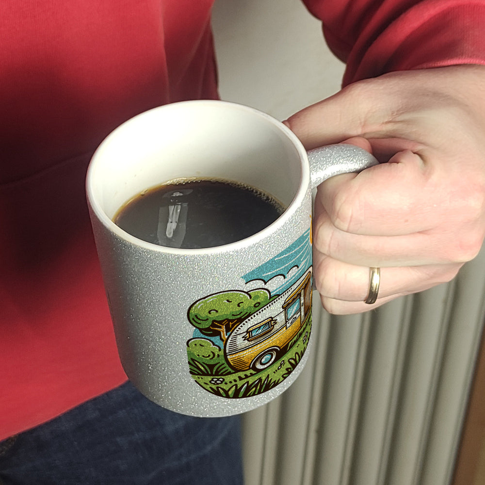 - Wach' auf und schnupper' Freiheit! Mit der Retro Vintage Campingtasse holst du dir den Charme eines klassischen Wohnwagen-Abenteuers direkt in deinen Morgen! Stell dir vor, wie der Sonnenschein die grüne Wiese küsst, während du aus diesem schicken Becher mit stilvollem Caravan-Design schlürfst.