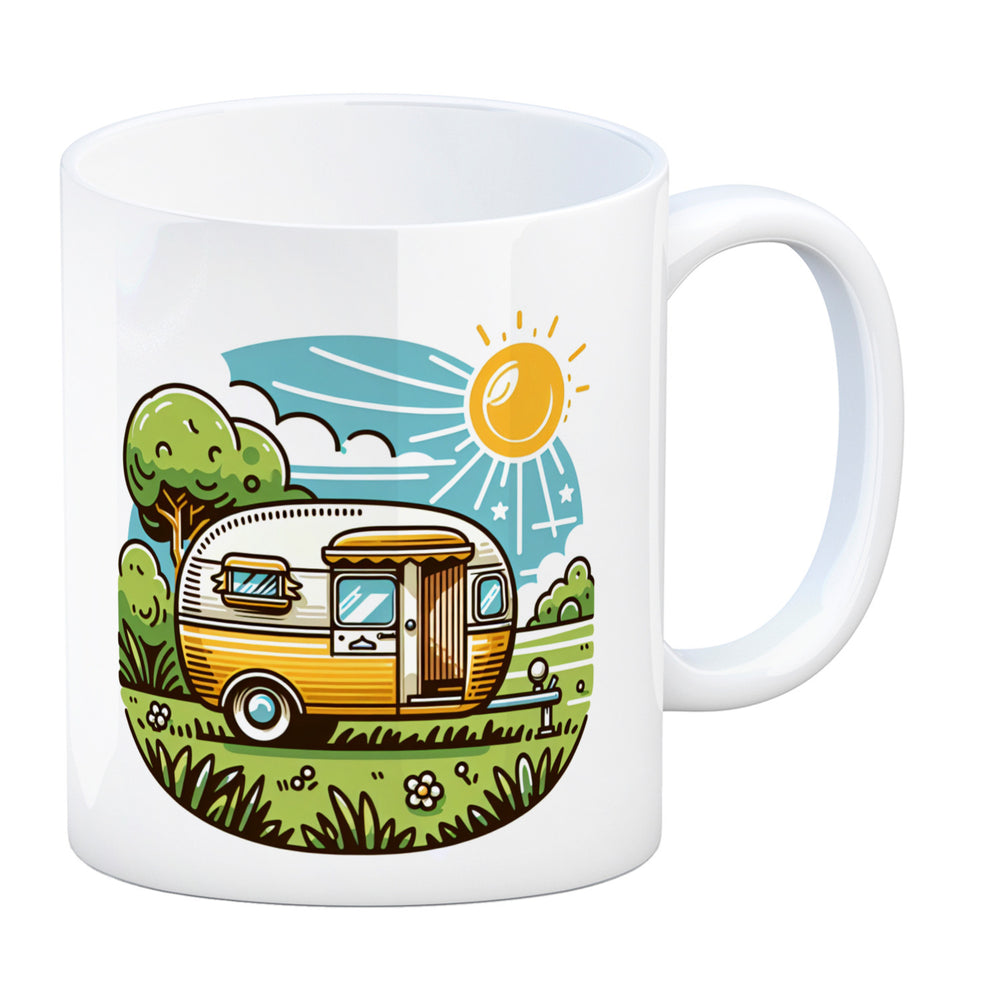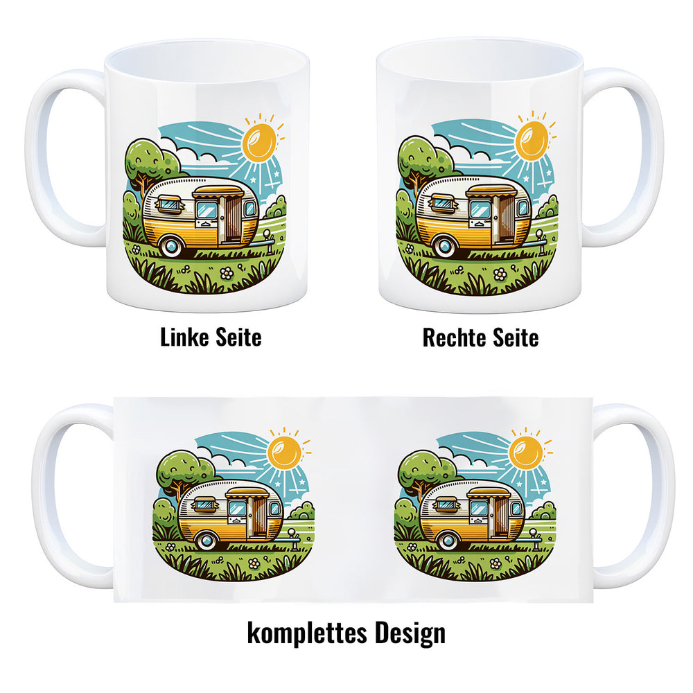 Campingwagen Kaffeebecher mit Spruch Happy Campers