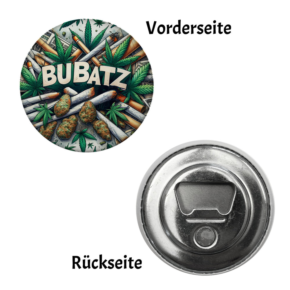• 1x Marihuana Kiffer Magnet rund mit Spruch Bubatz in der gewählten Ausführung
