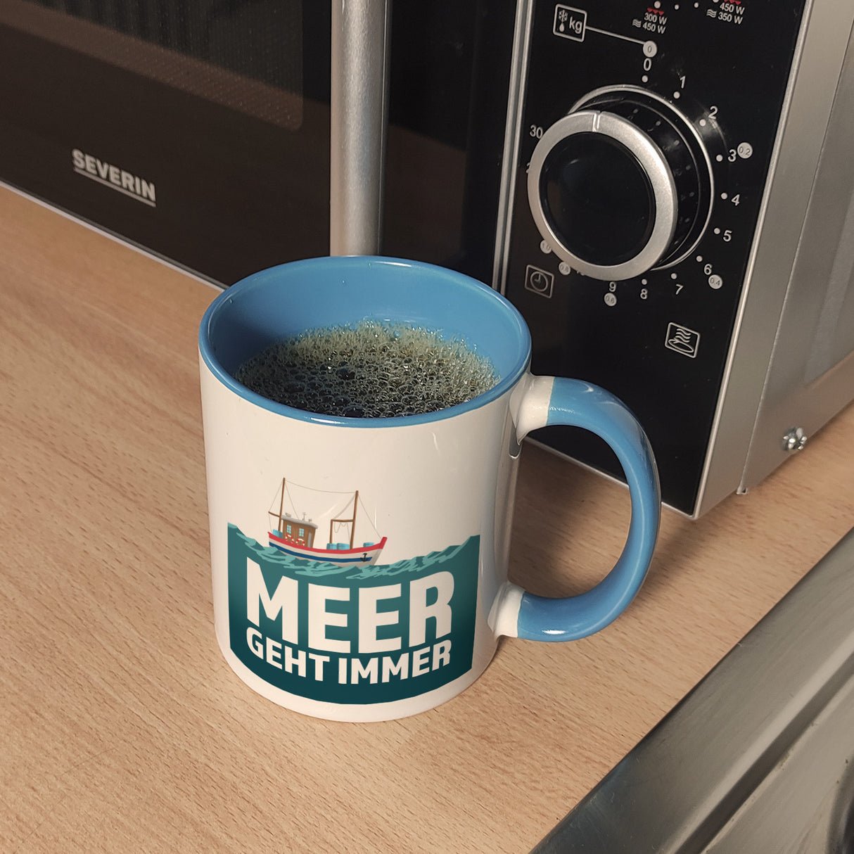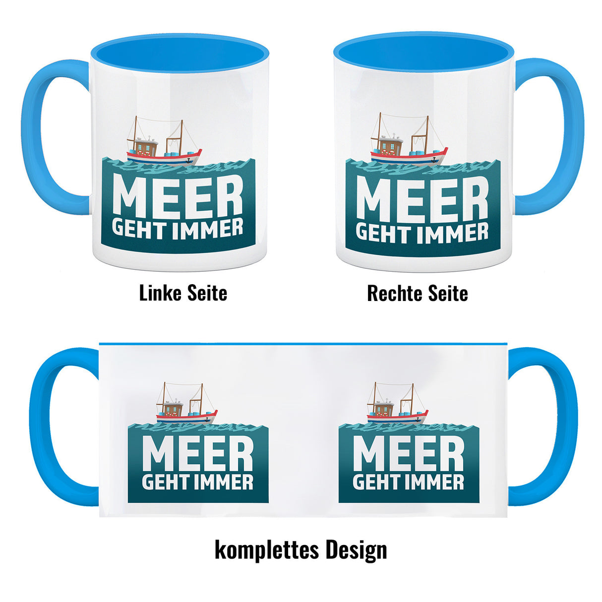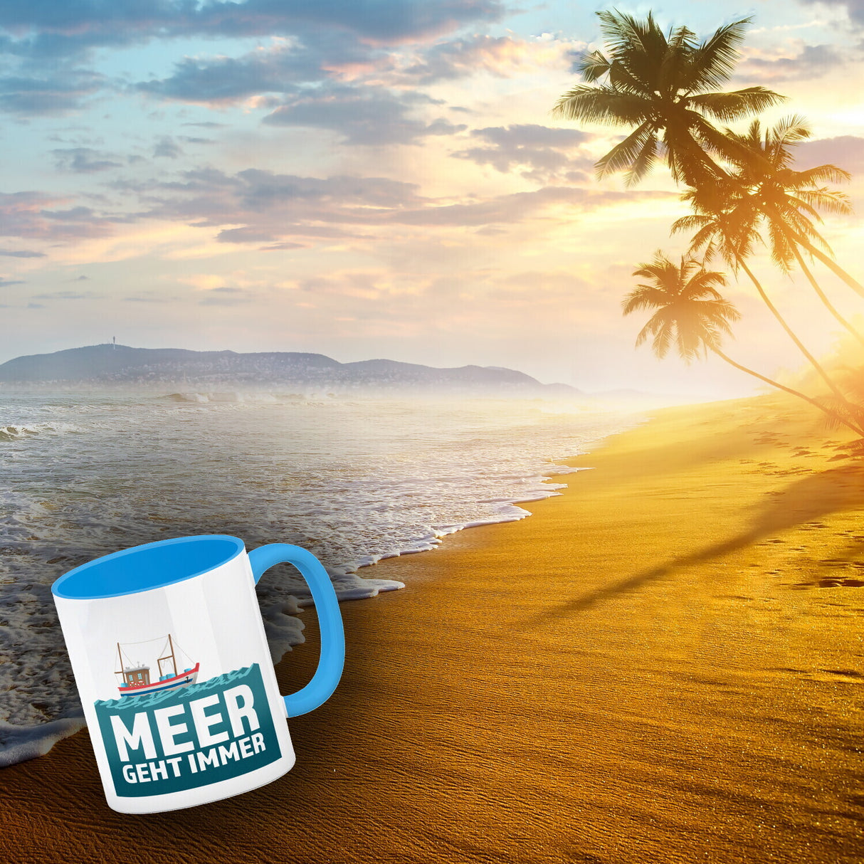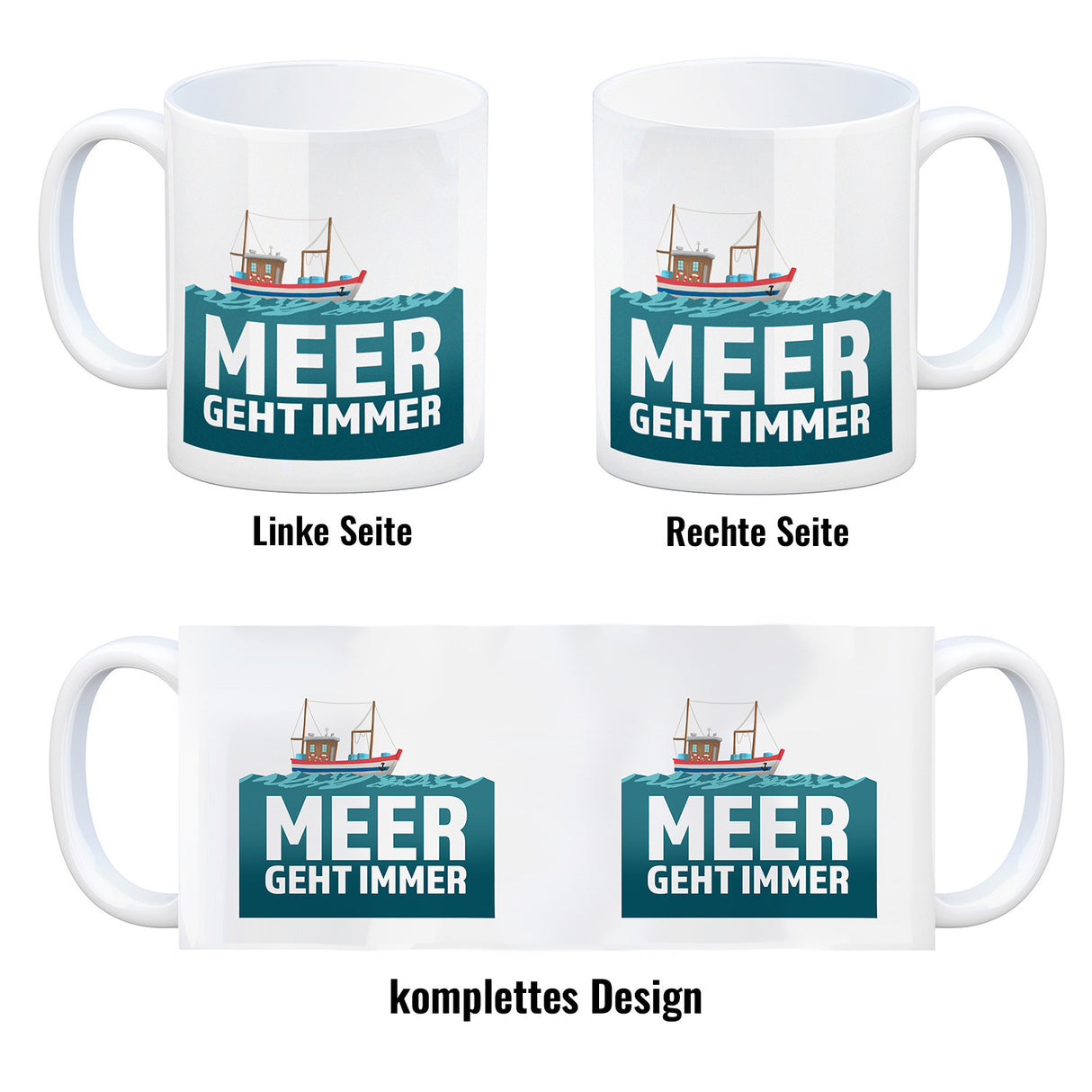 - 1x Meer geht immer Kaffeebecher mit Boot für Urlauber in der gewählten Ausführung