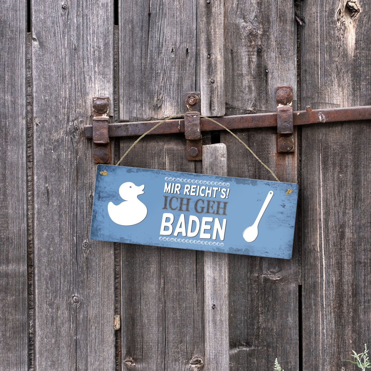 • 1x Metallschild mit Spruch: Mir reicht's! Ich geh baden in der gewählten Größe