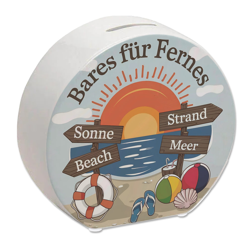 Spardose aus Keramik mit Strand Motiv und Text - Strand und Meer Strandgeld