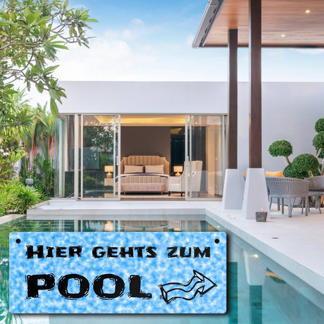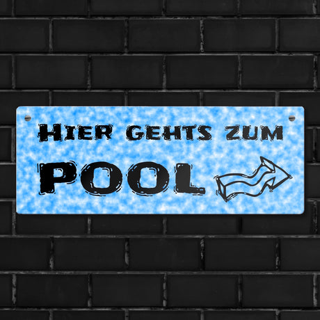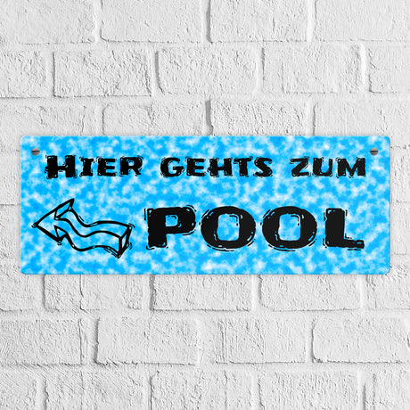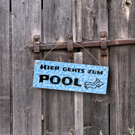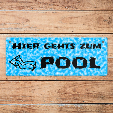 Hier geht’s zum Pool Metallschild Swimmingpool schwimmen tauchen Wasser abkühlen